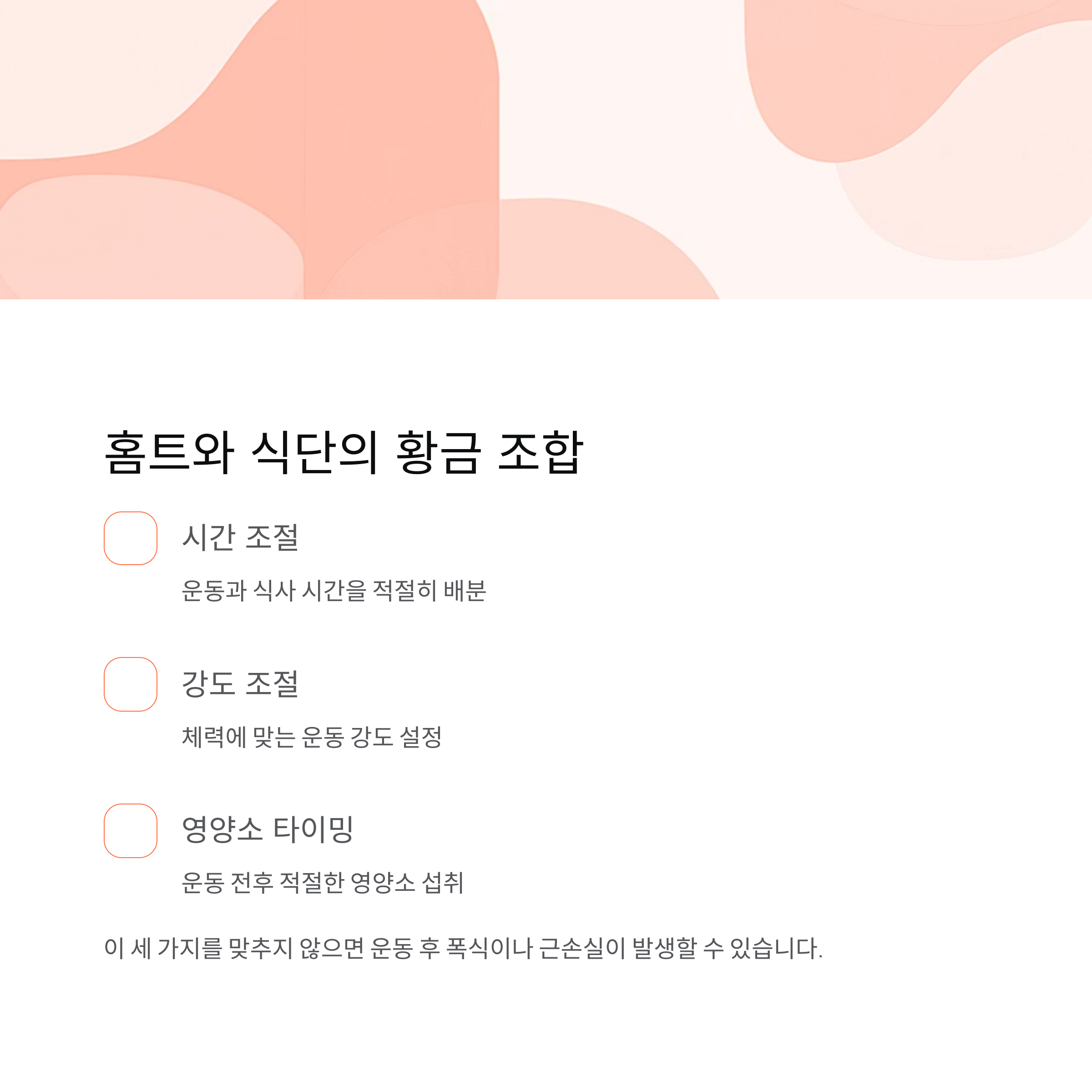 | 목 | 전신 서킷 트레이닝 | 수분 섭취 ↑ |