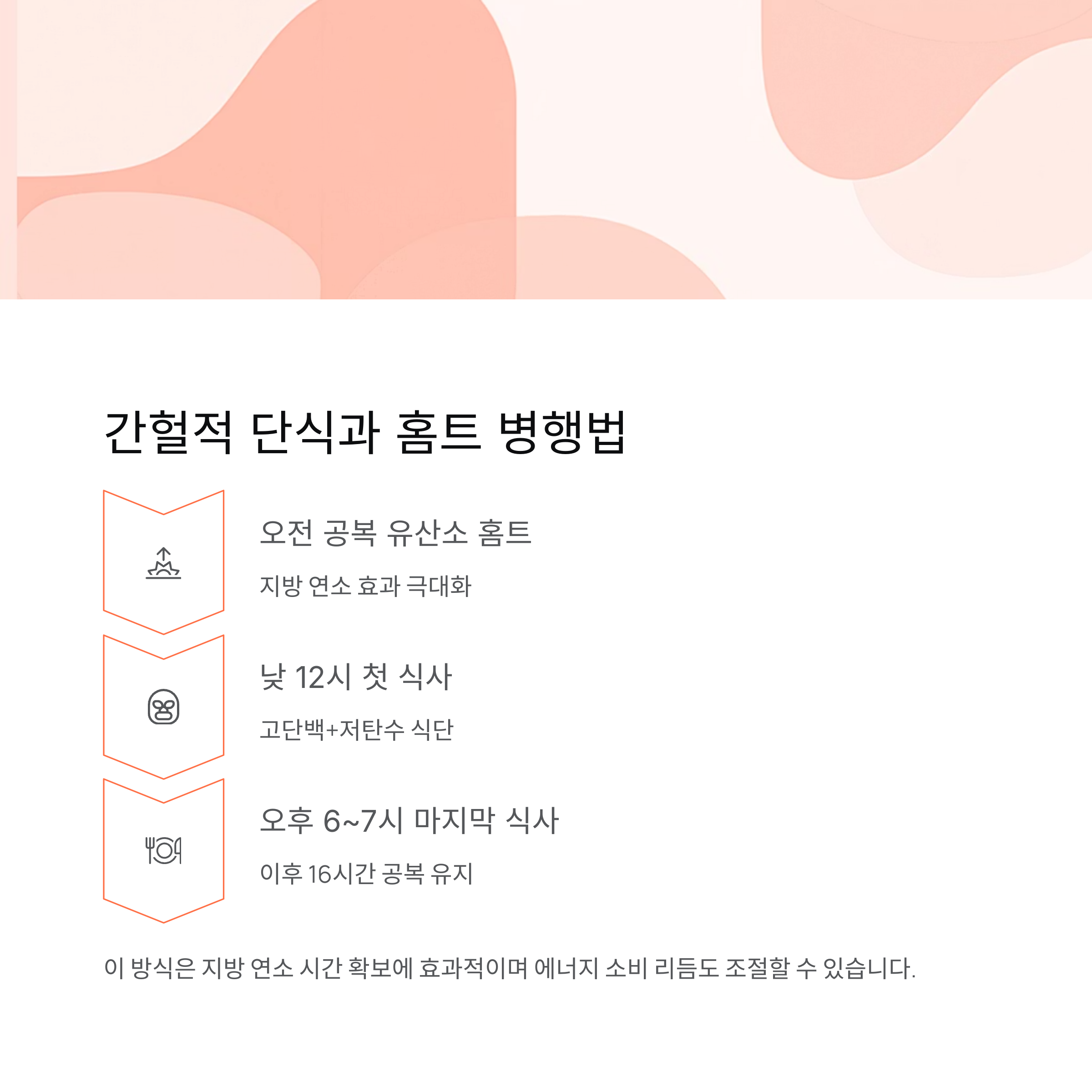 이 방식은 지방 연소 시간 확보에 효과적이며