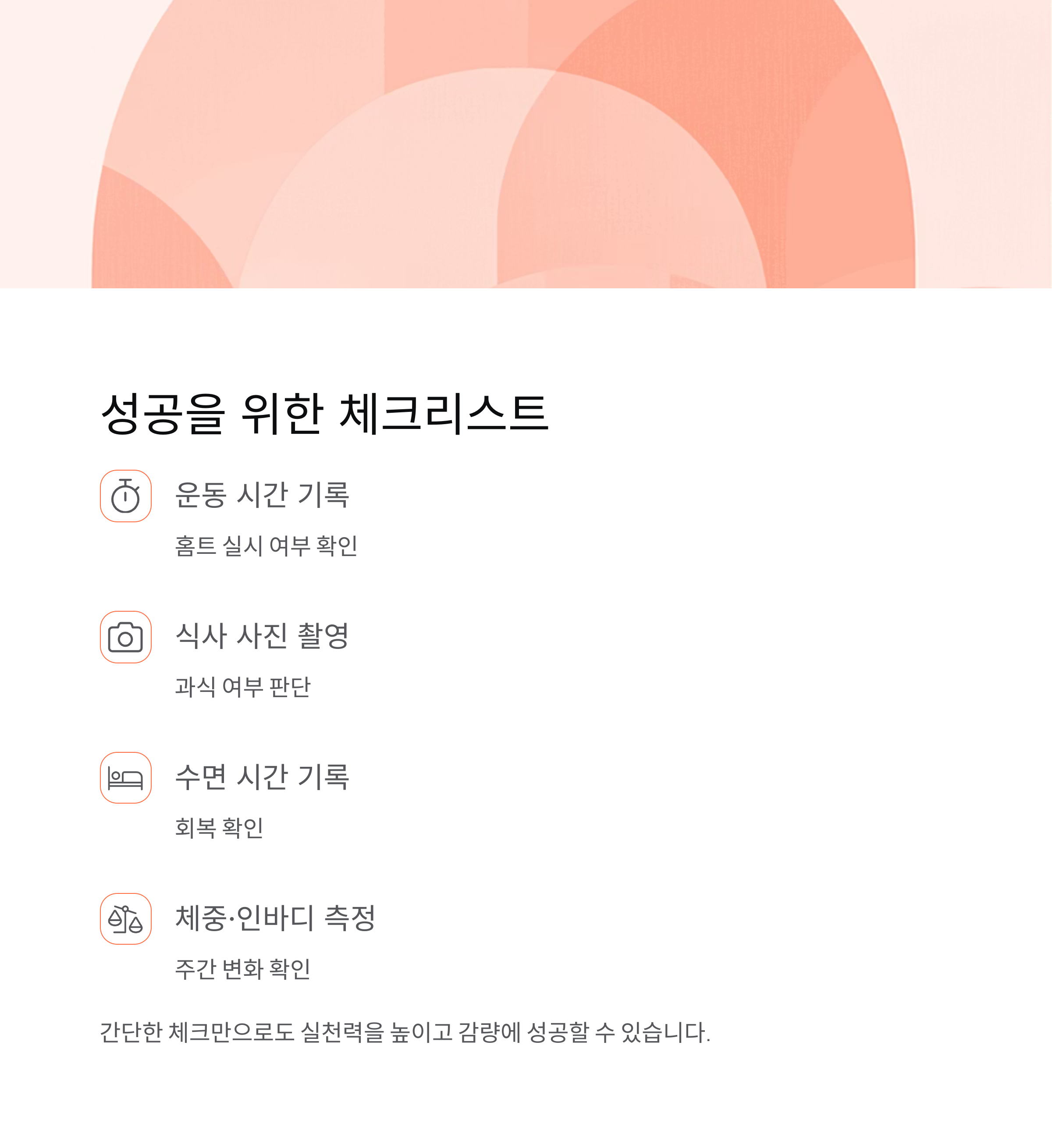 간단한 체크만으로도 실천력을 높이고 감량에 성공할 수 있습니다