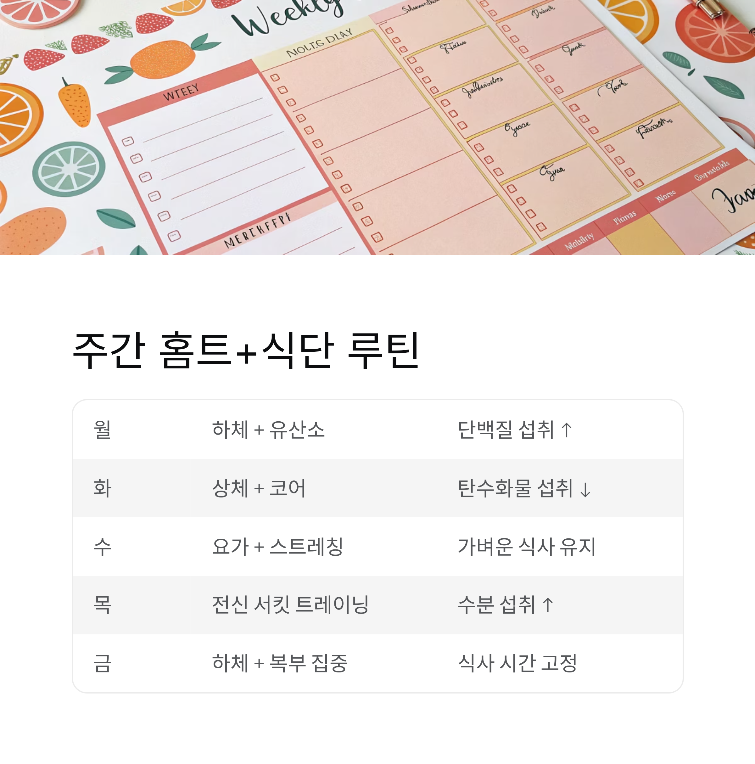 홈트와 식단을 주간 단위로 계획하면