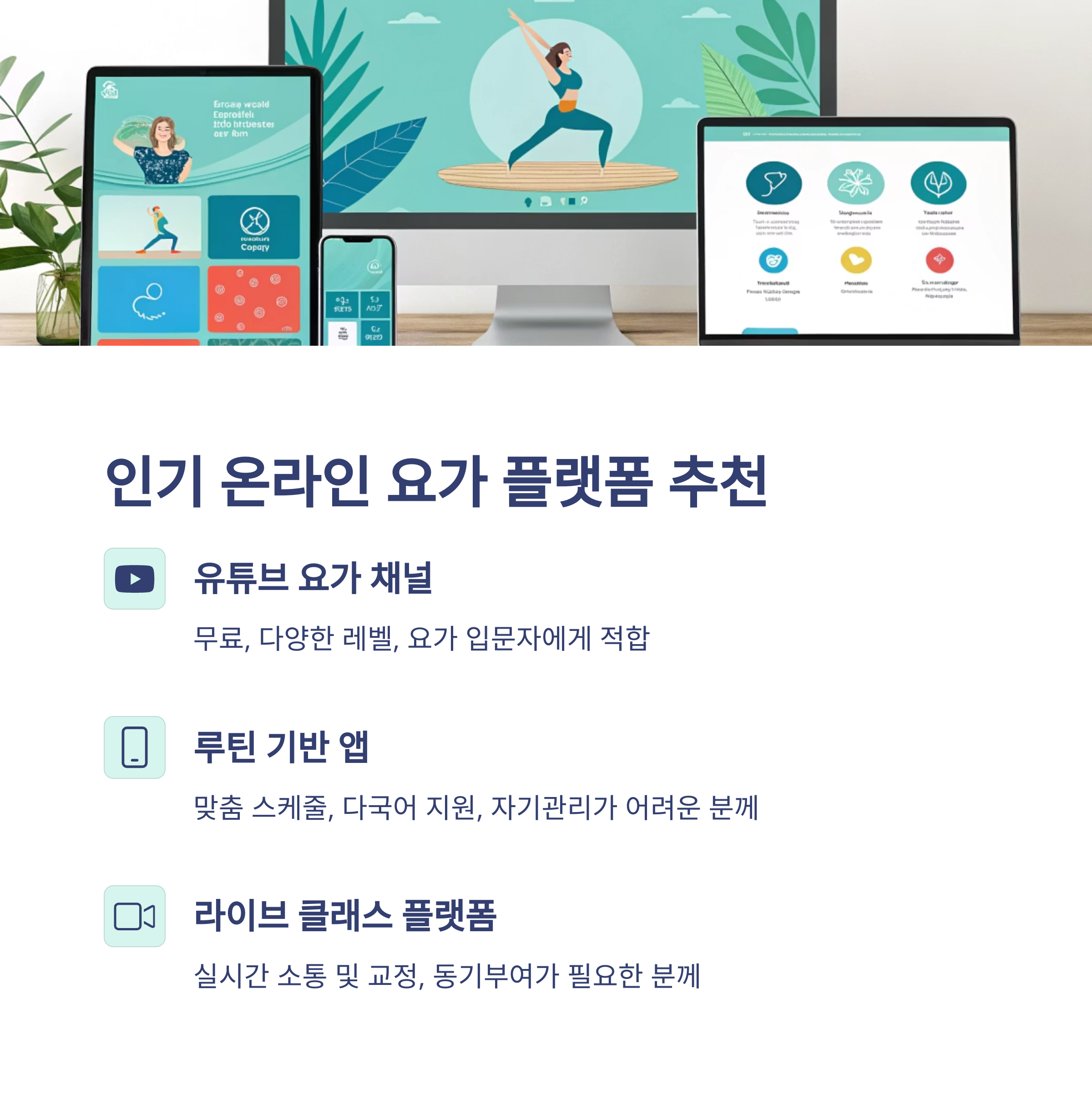| 라이브 클래스 플랫폼 (예: 줌 요가) | 실시간 소통 및 교정 | 동기 부여 필요한 분 |