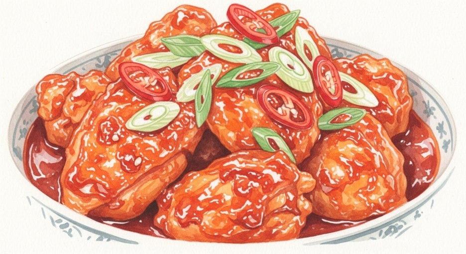 부드러운 닭살과 윤기 흐르는 양념, 아삭한 채소의 조화가 정말 일품이랍니다.
