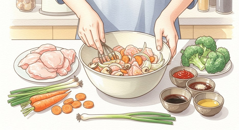 닭고기는 한번 데쳐 불순물을 제거한 뒤 양념에 재어 놓으면 더 깊은 맛이 나죠.