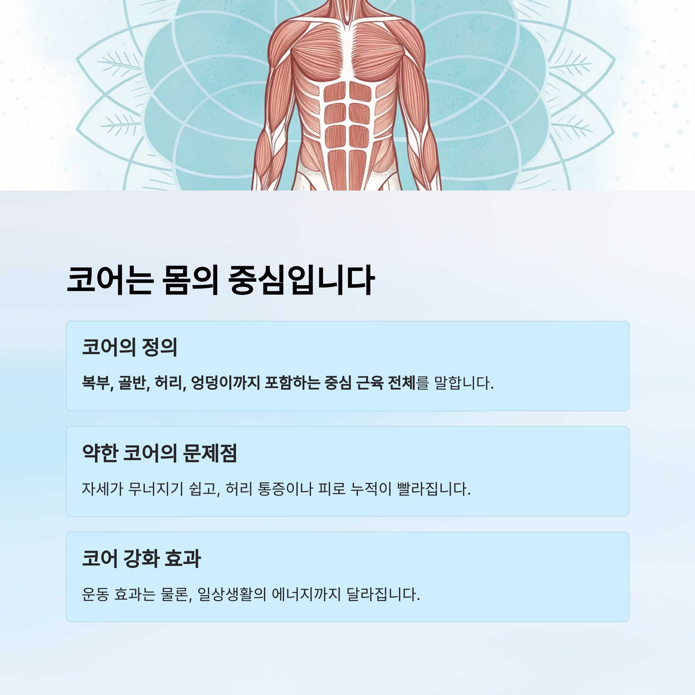 "코어는 식스팩이 아니라 몸의 중심입니다"