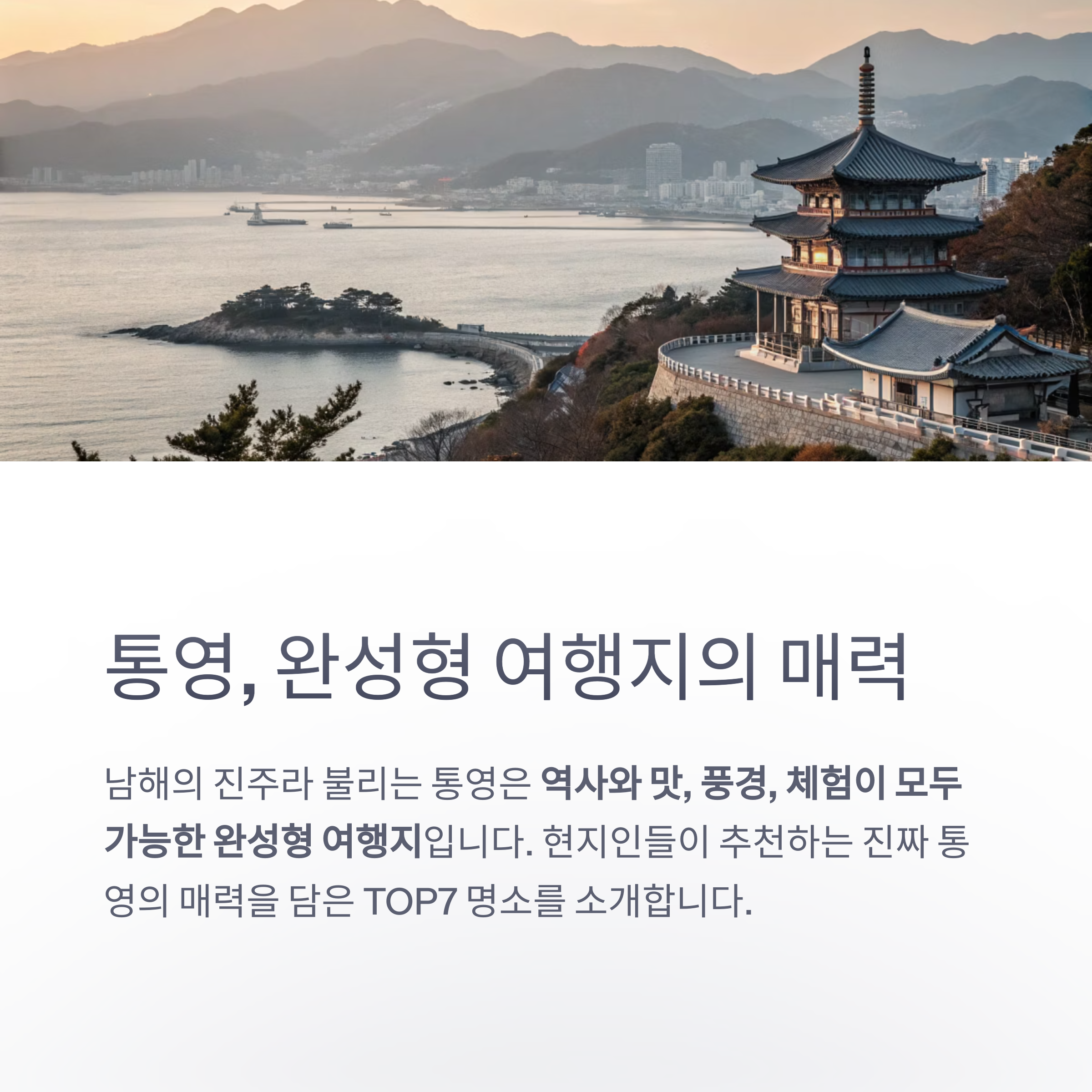 현지인들이 추천하는 진짜 통영의 매력을 담은 TOP7 명소 코스를 소개합니다.
