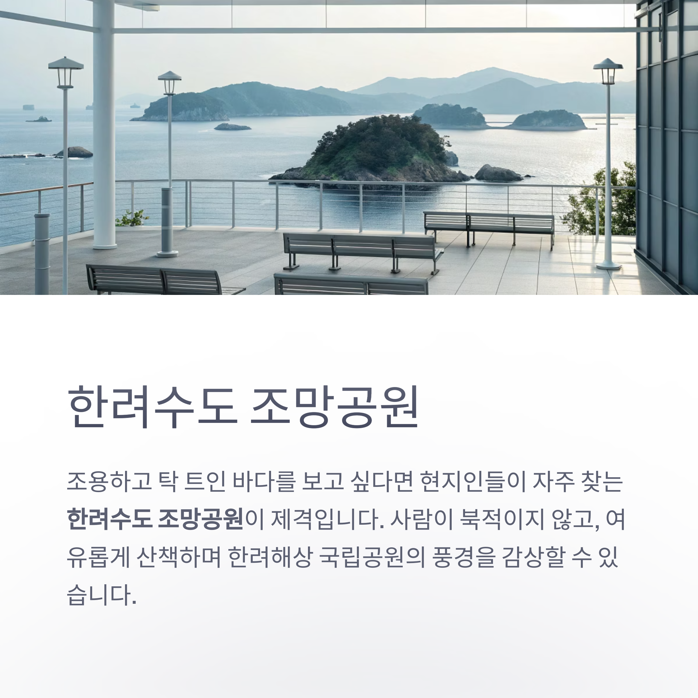 현지인들이 자주 찾는 한려수도 조망공원이 제격입니다.