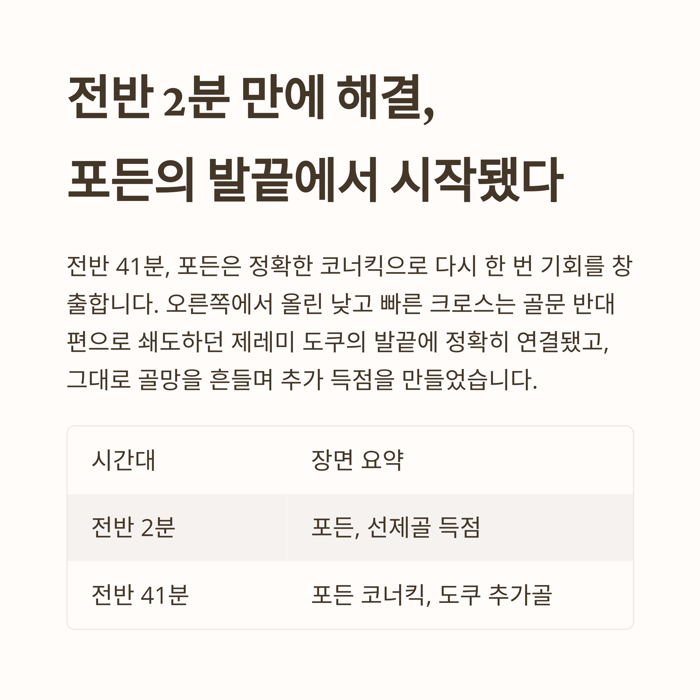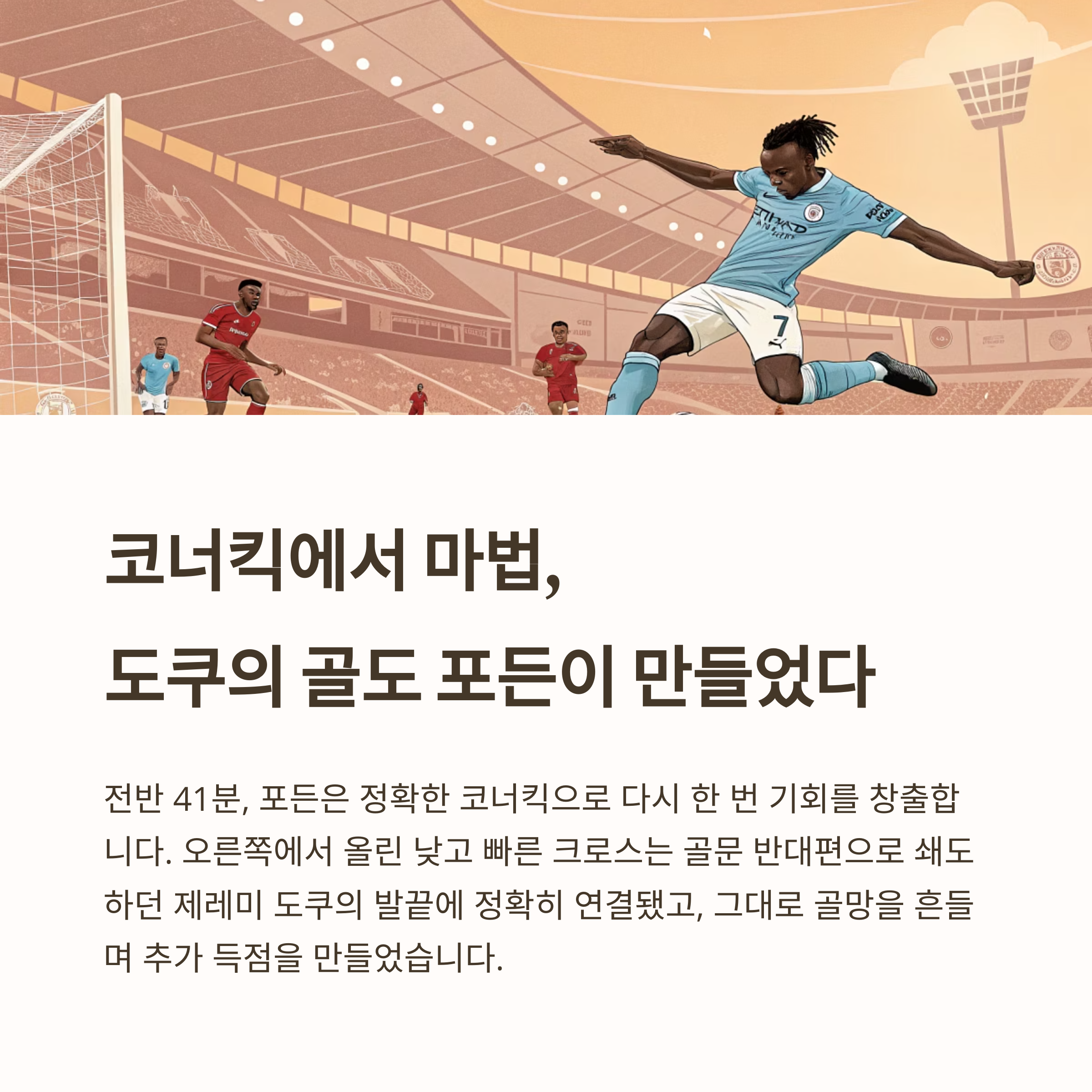 | 전반 41분 | 포든 코너킥, 도쿠 추가골 |