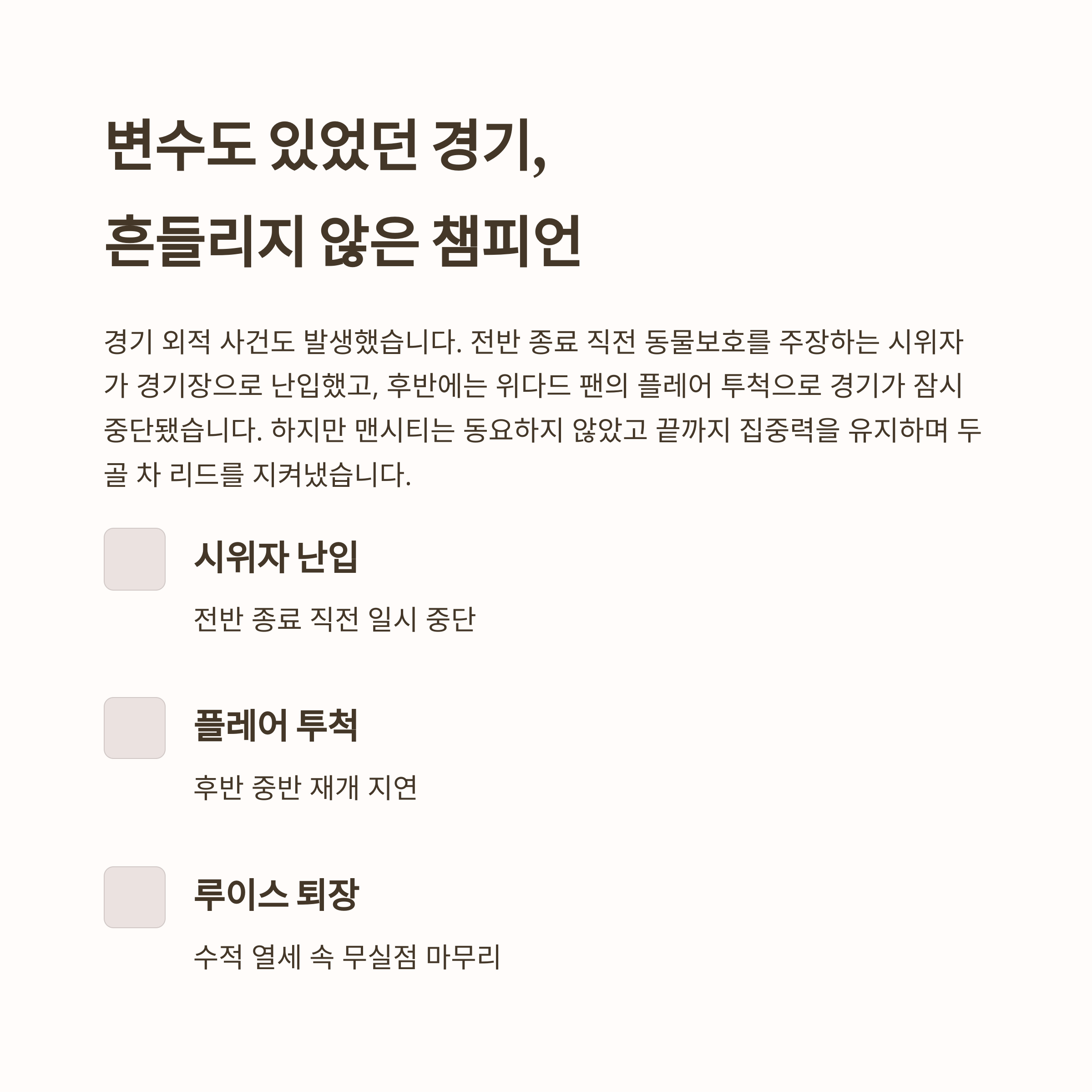 하지만 맨시티는 동요하지 않았고 끝까지 집중력을 유지하며