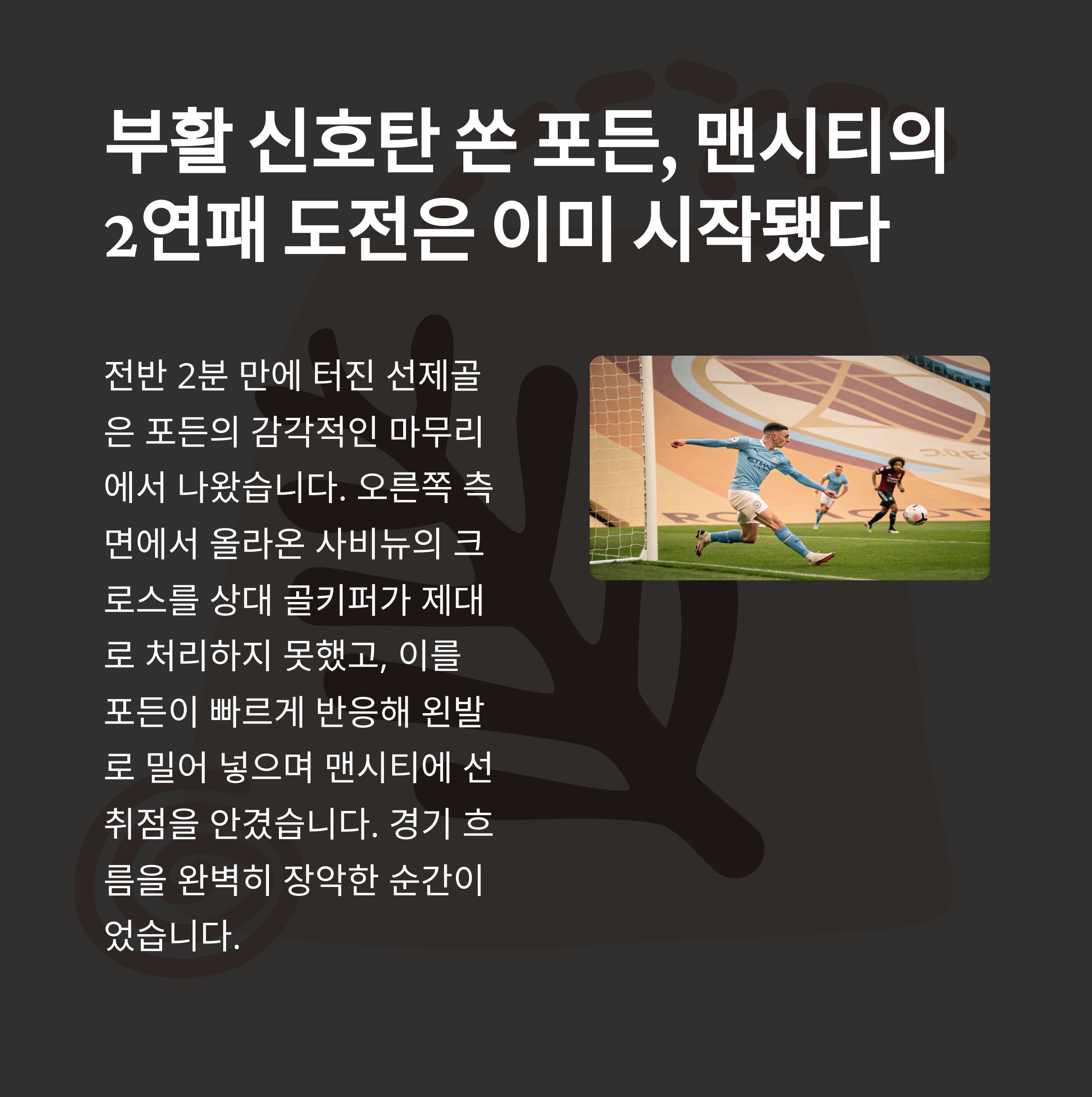| 전반 2분 | 포든, 선제골 득점 |