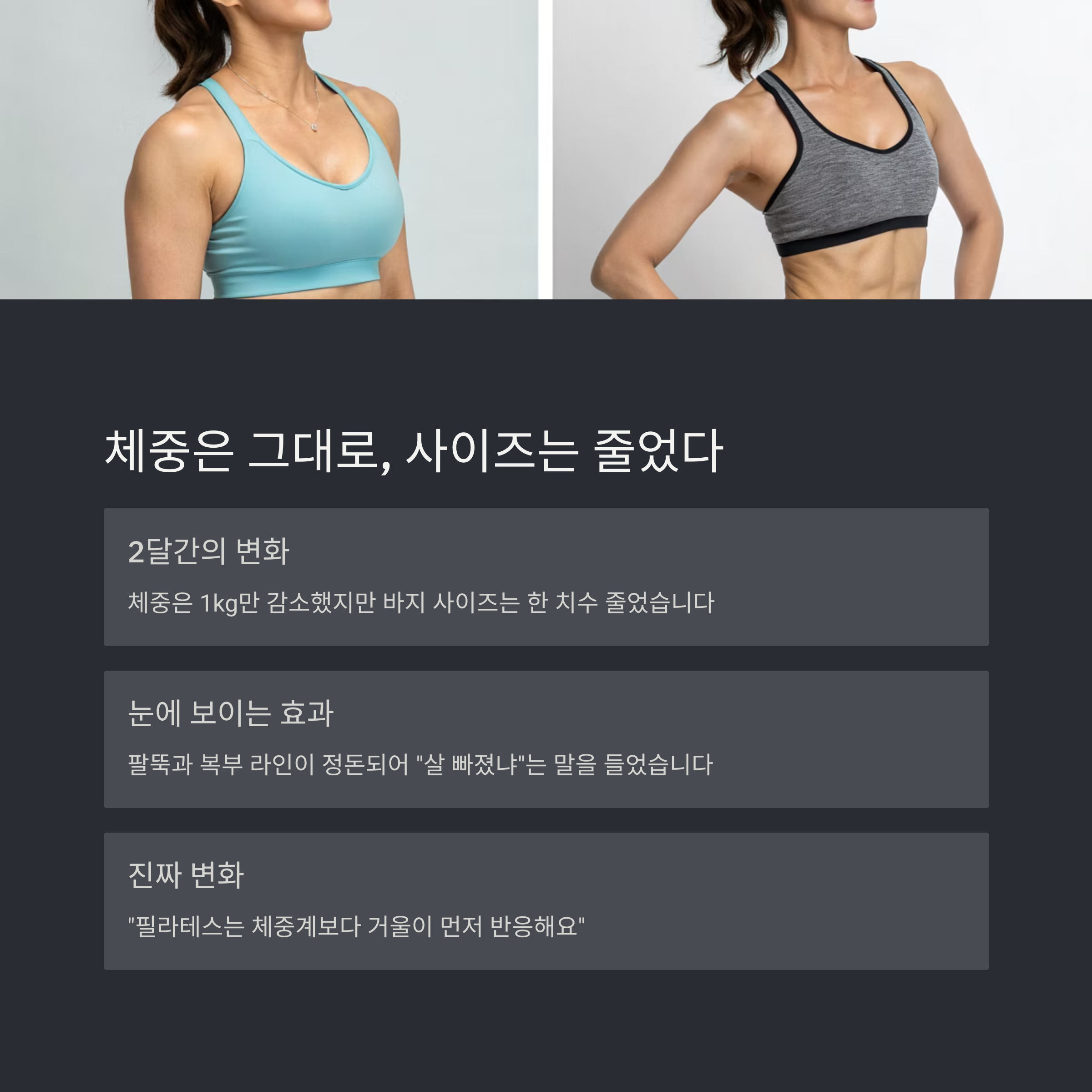 "필라테스는 체중계보다 거울이 먼저 반응해요"