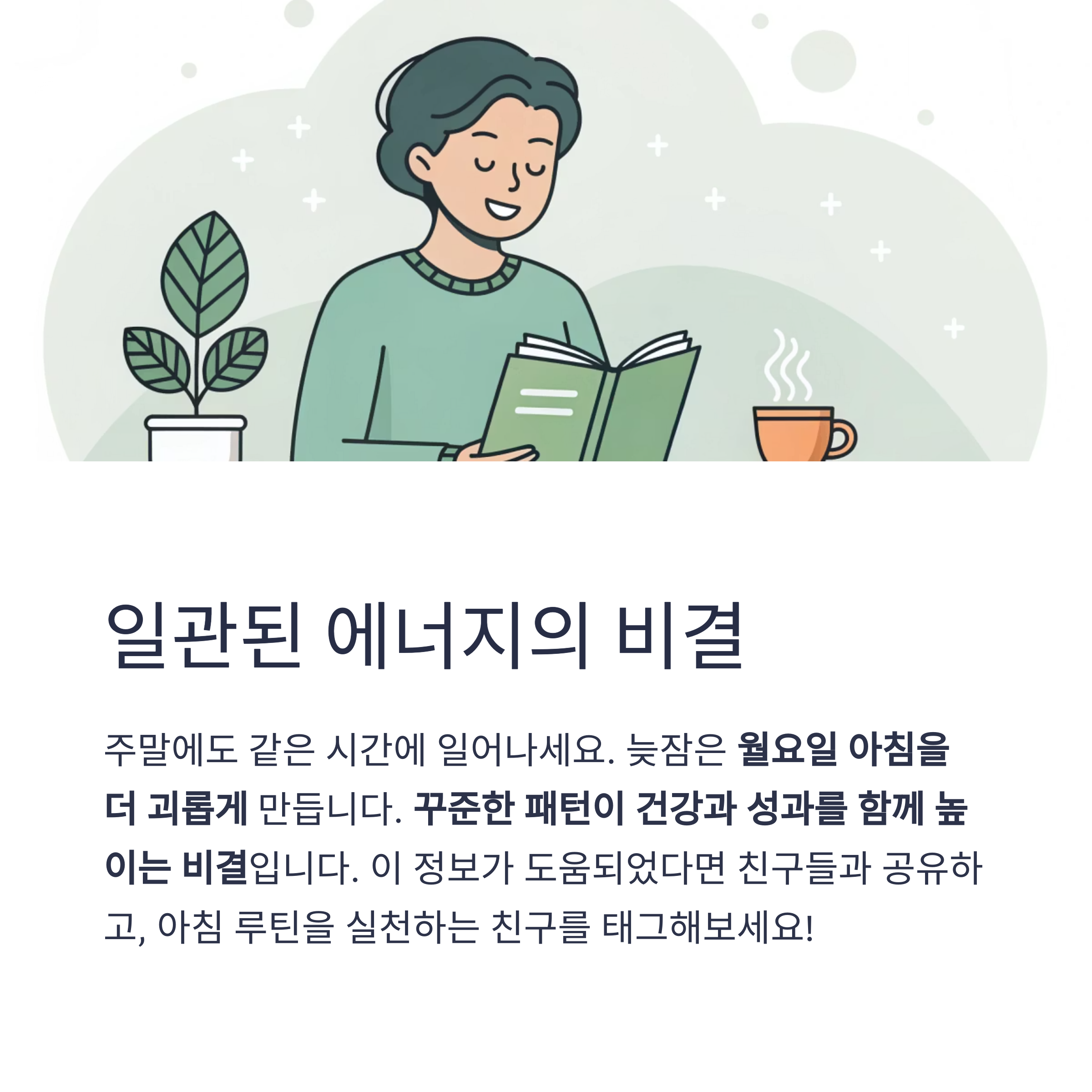 기상 루틴을 유지하는 것이 ‘일관된 에너지 흐름’을 만듭니다.