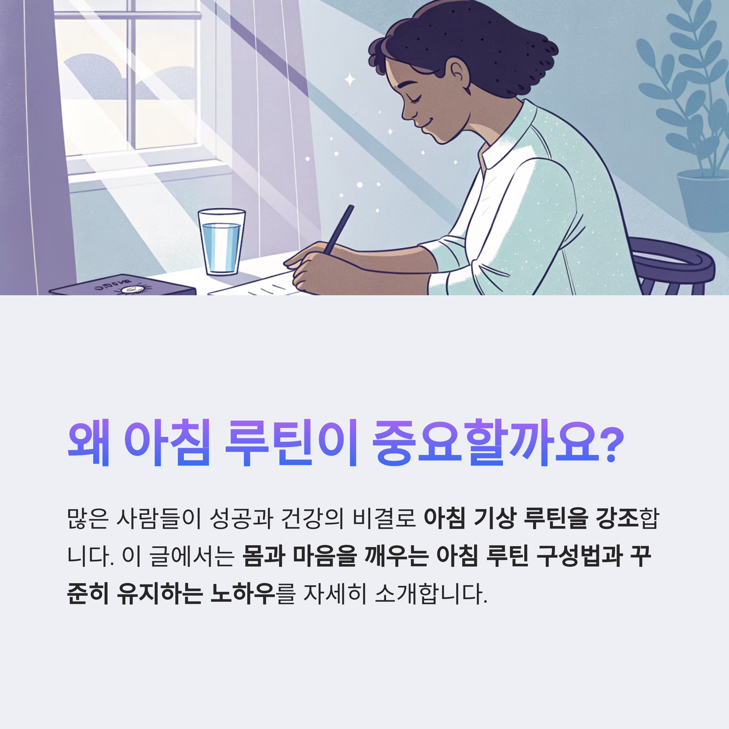 이 글에서는 몸과 마음을 깨우는 아침 루틴 구성법과 꾸준히 유지하는 노하우를 자세히 소개합니다.