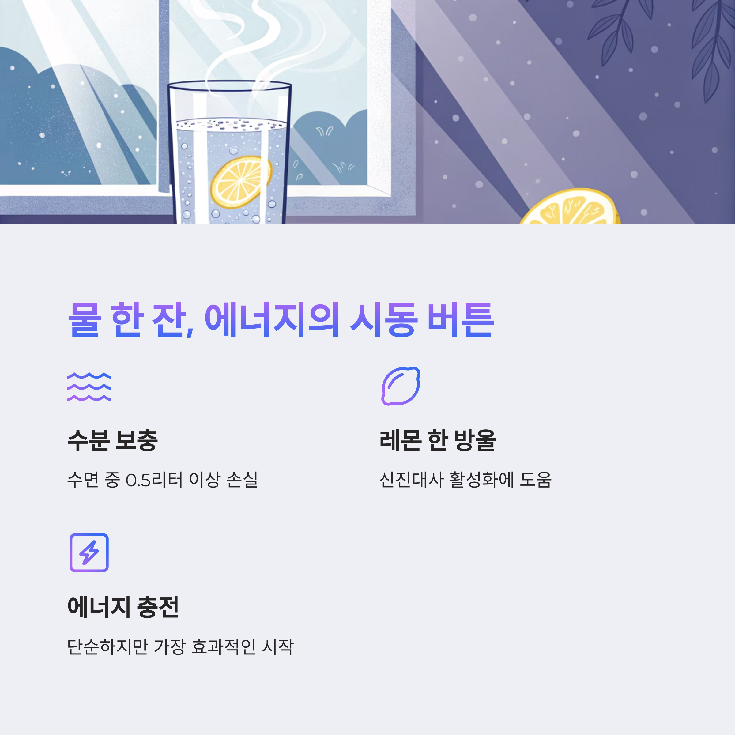 따라서 기상 직후 미지근한 물 한 잔은 몸에 시동을 거는 핵심 루틴입니다.