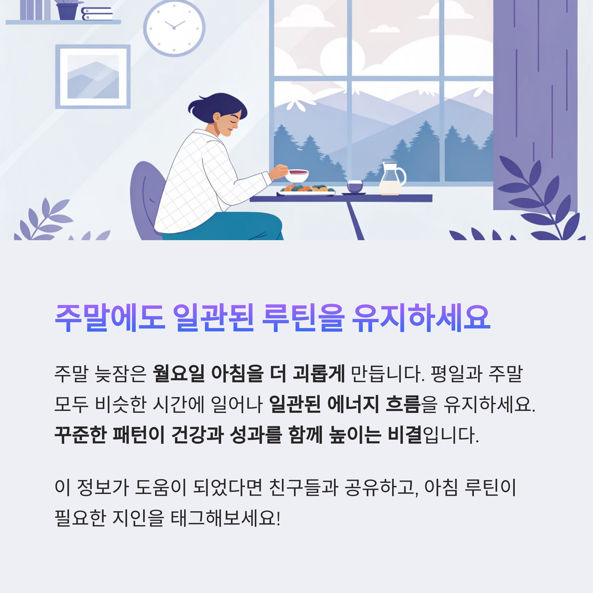 기상 루틴을 유지하는 것이 ‘일관된 에너지 흐름’을 만듭니다.