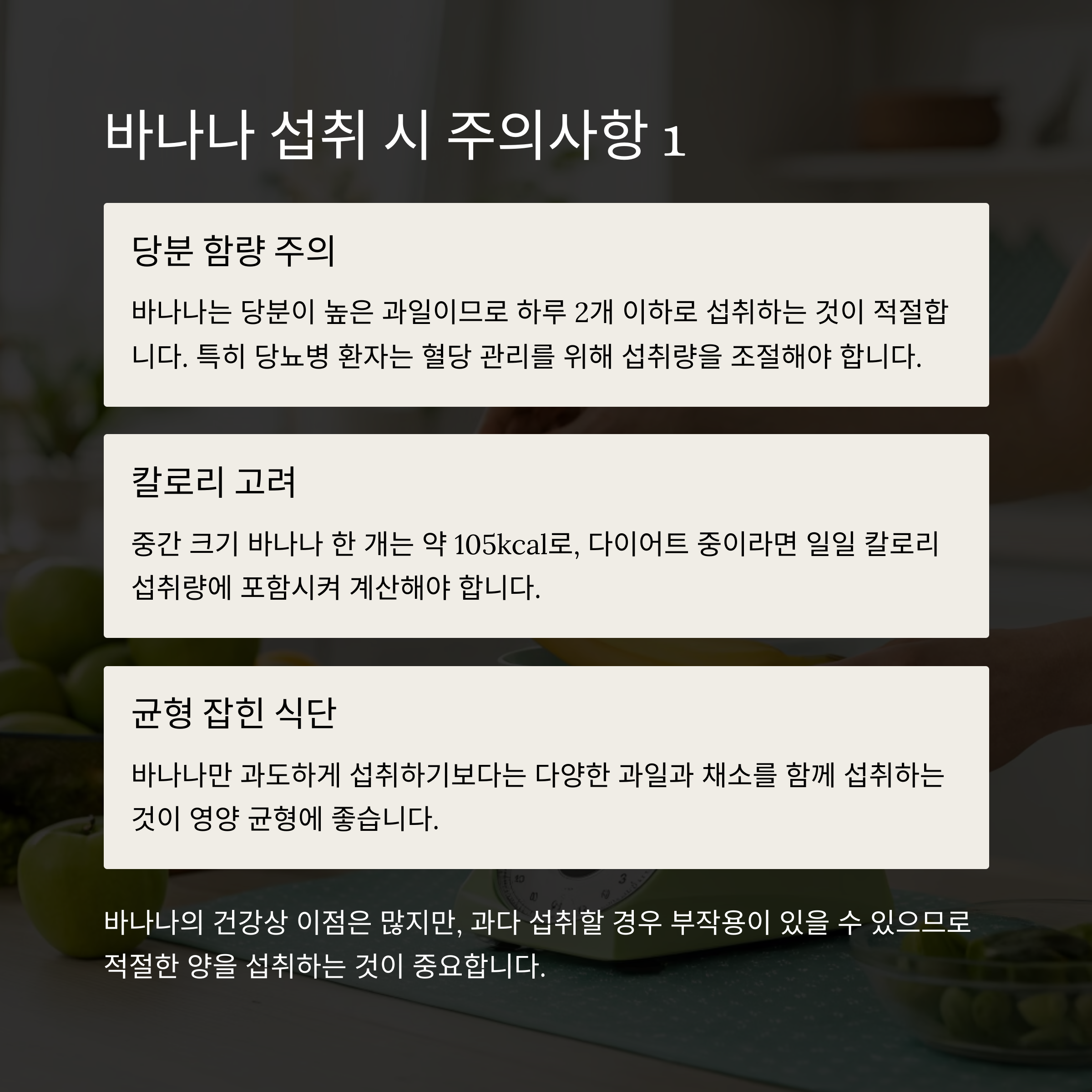 - 당뇨병 환자는 혈당 관리를 위해 바나나 섭취량을 조절해야 합니다.