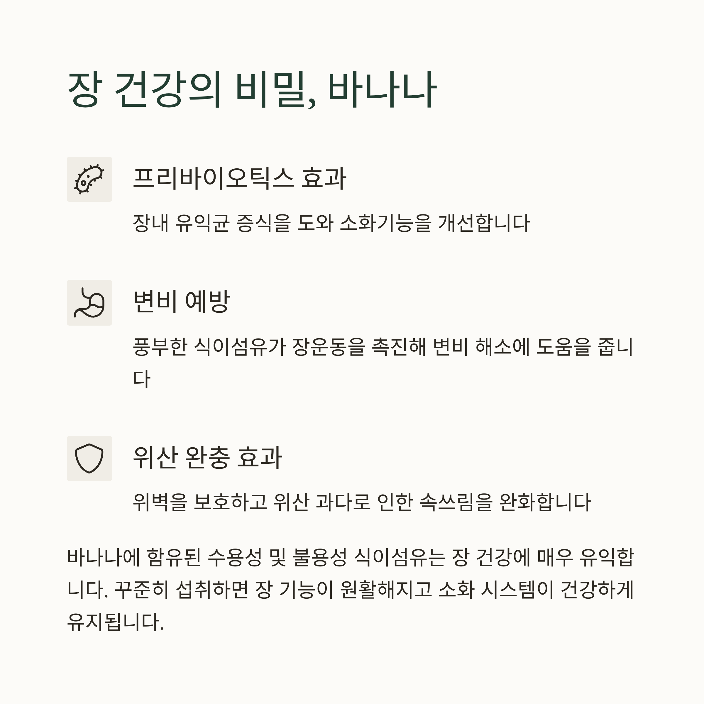 바나나에는 수용성 및 불용성 식이섬유가 풍부하여 장 건강에 매우 유익합니다.