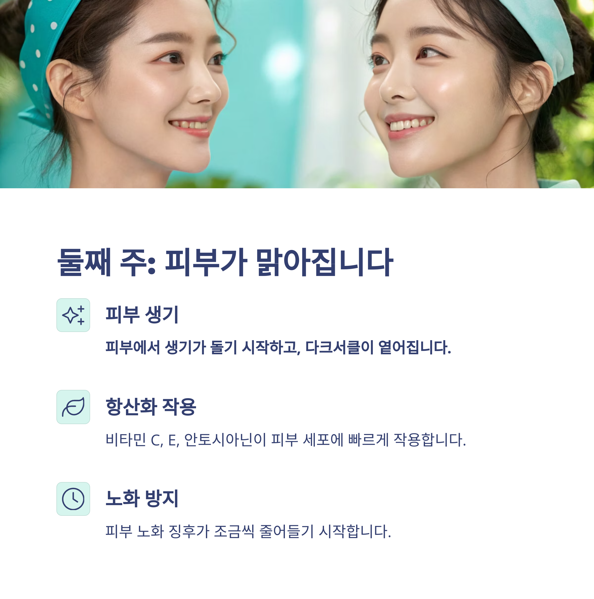 둘째 주: 피부톤이 맑아지고 피로가 덜하다