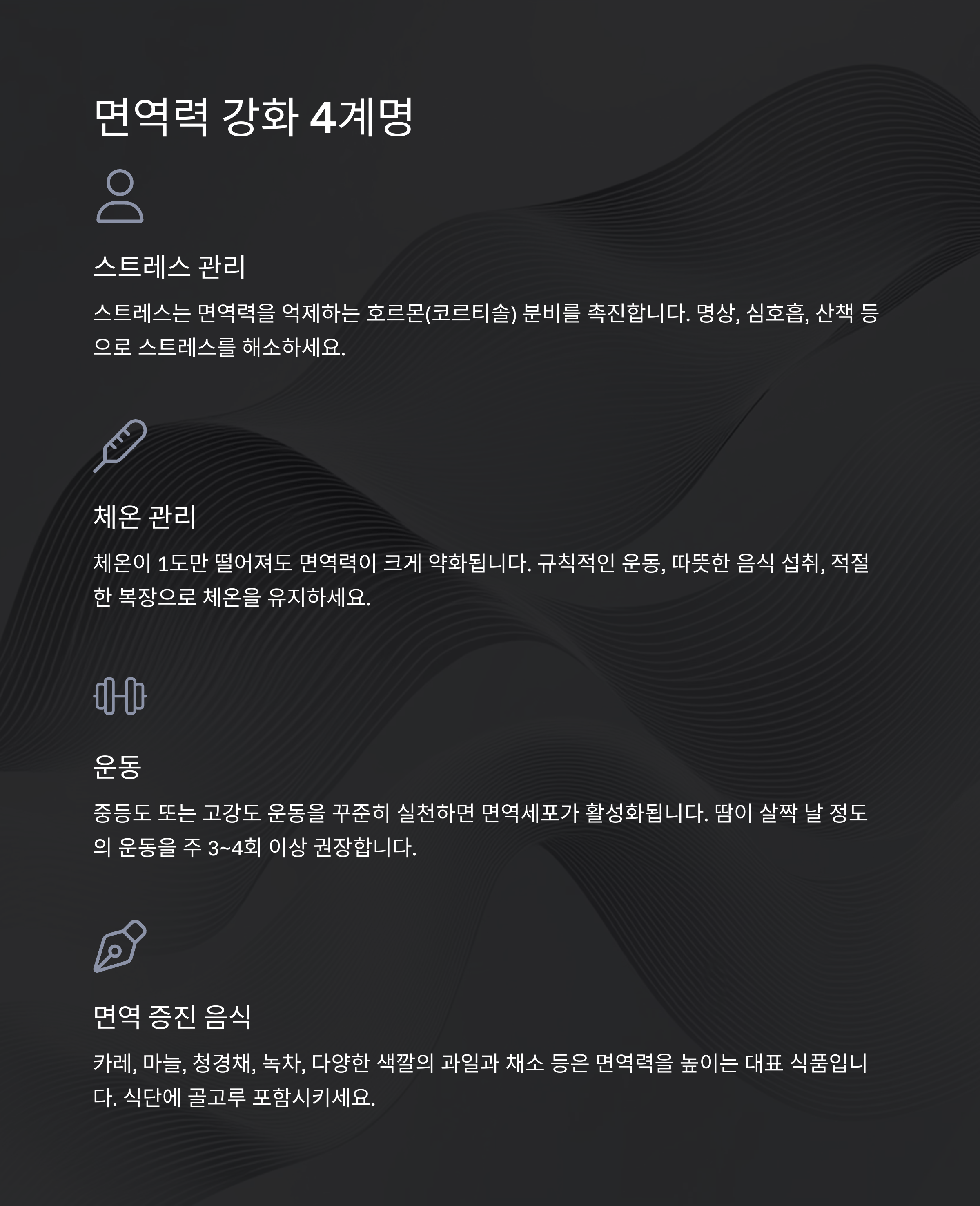 이번 글에서는 면역력을 관리하고 키우는 실천적인 방법들을 소개합니다.