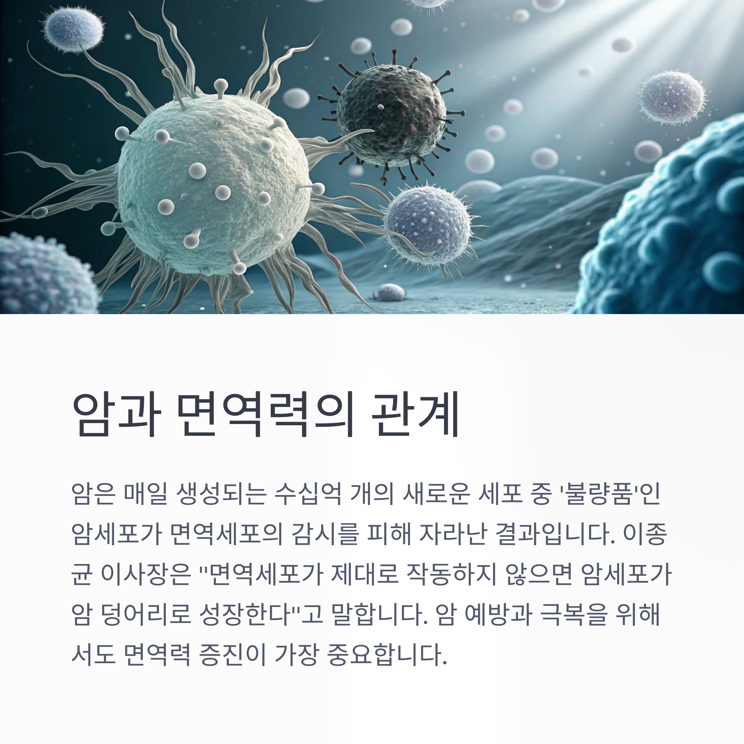 서울송도병원 이종균 이사장이 전하는 ‘면역력 강화 4계명’을 중심으로