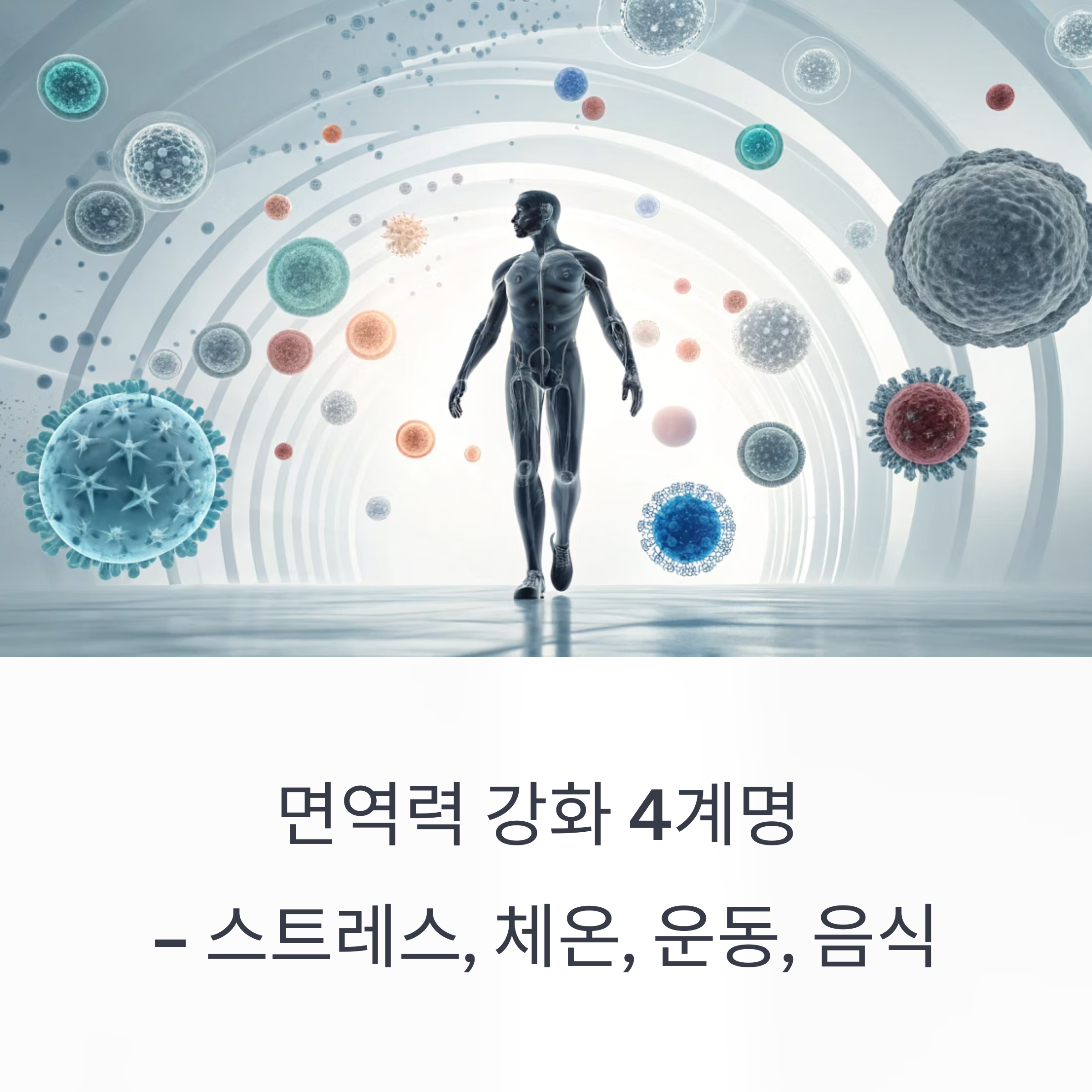 스트레스, 체온, 운동, 식단이라는 핵심 요소를 일상 속에서 쉽게 실천할 수 있는 방법을 소개해드립니다.