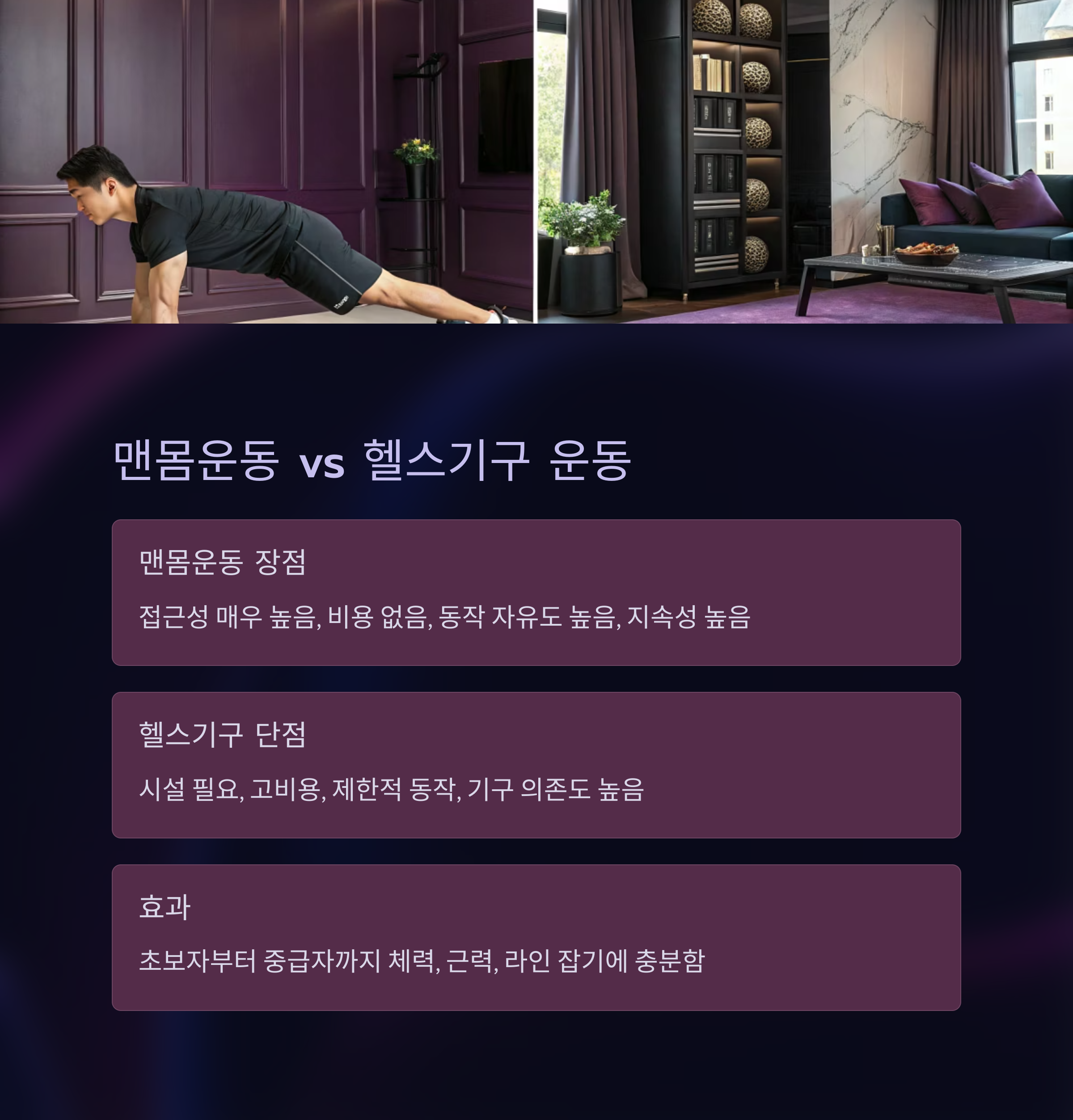 맨몸 전신운동의 장점 vs 헬스기구 운동 비교