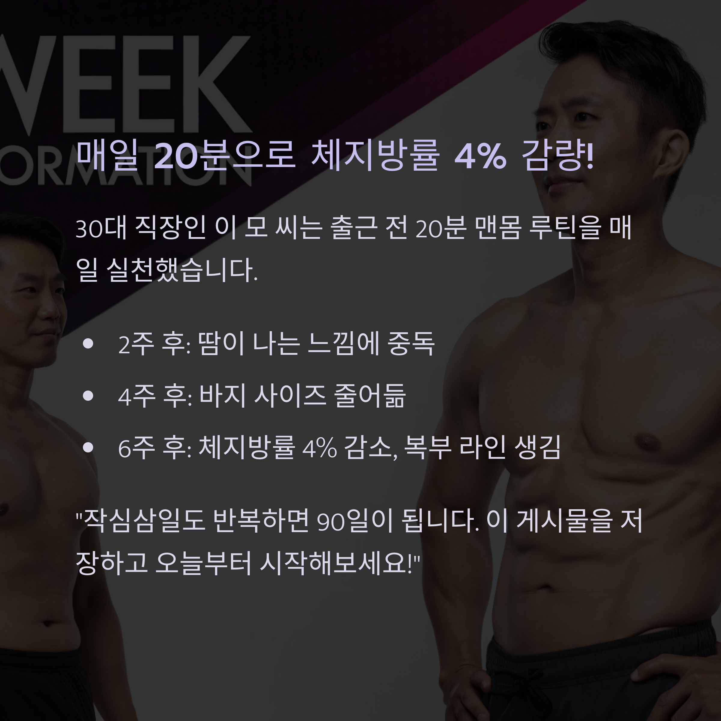 - 6주 후: 체지방률 4% 감소, 복부 라인 생김