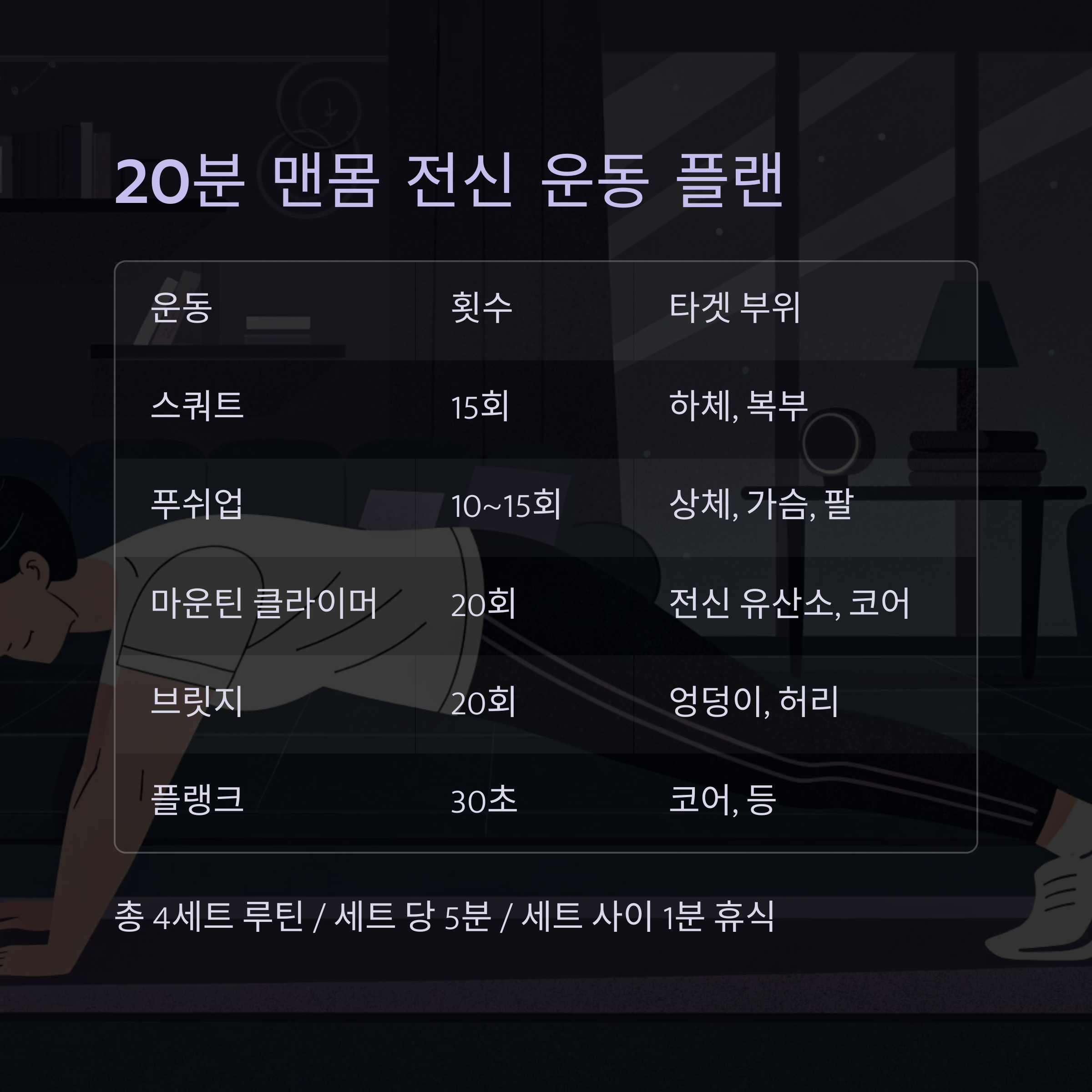 - 단 20분 투자로 전신 운동 루틴 완성 가능