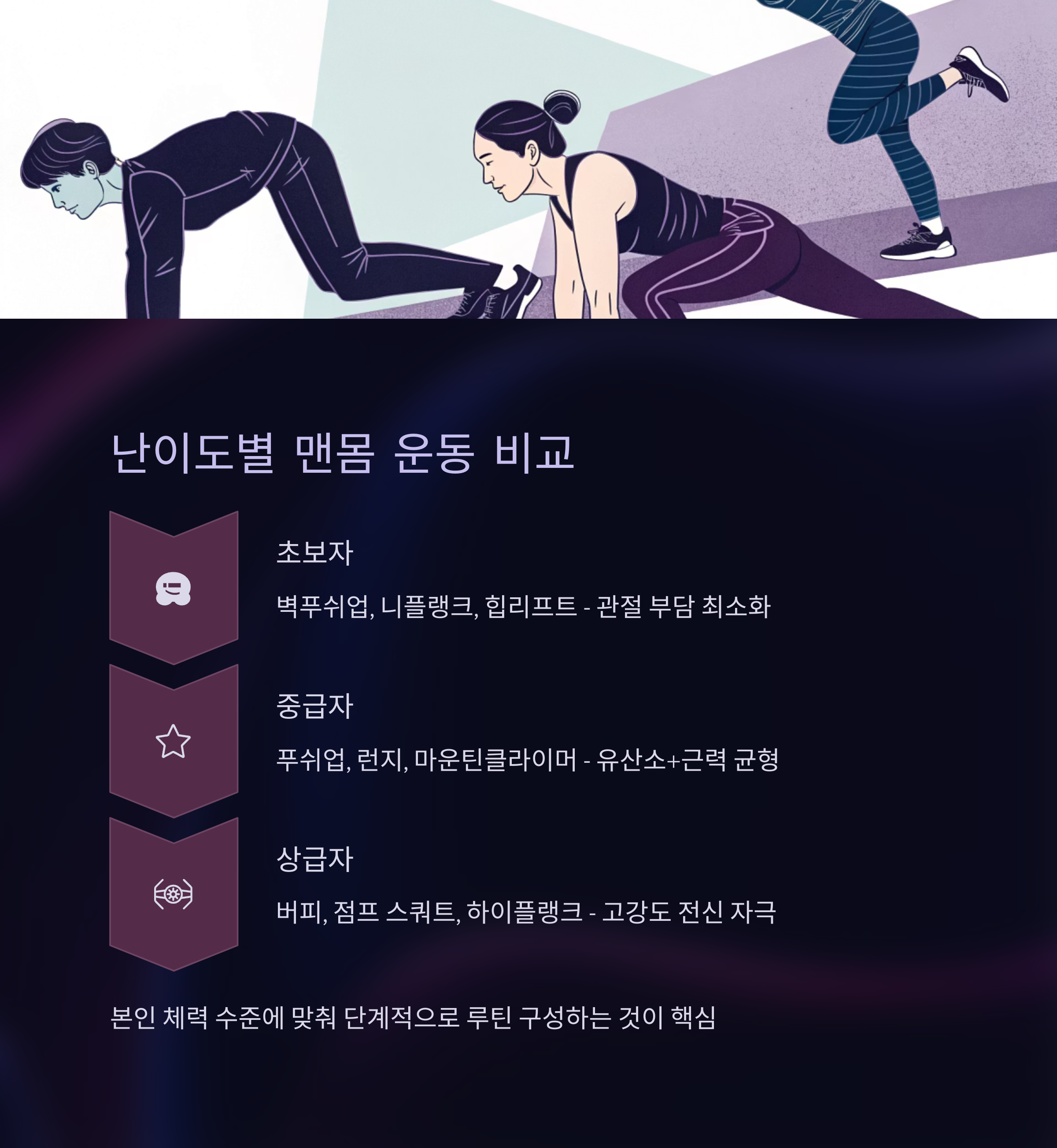 초보자용 vs 상급자용 맨몸 운동 비교표