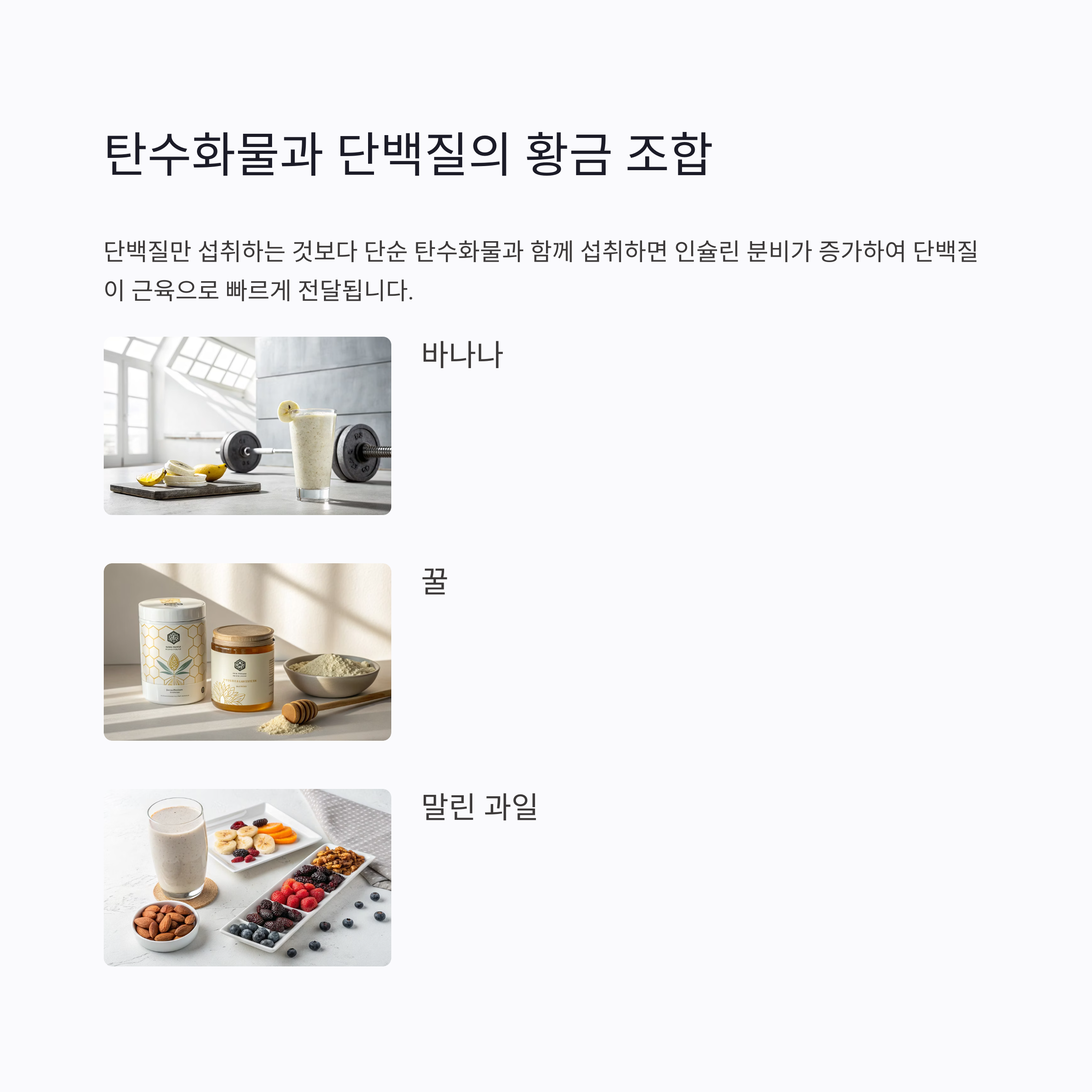 운동 직후 필수 영양소 조합: 탄수화물 + 단백질