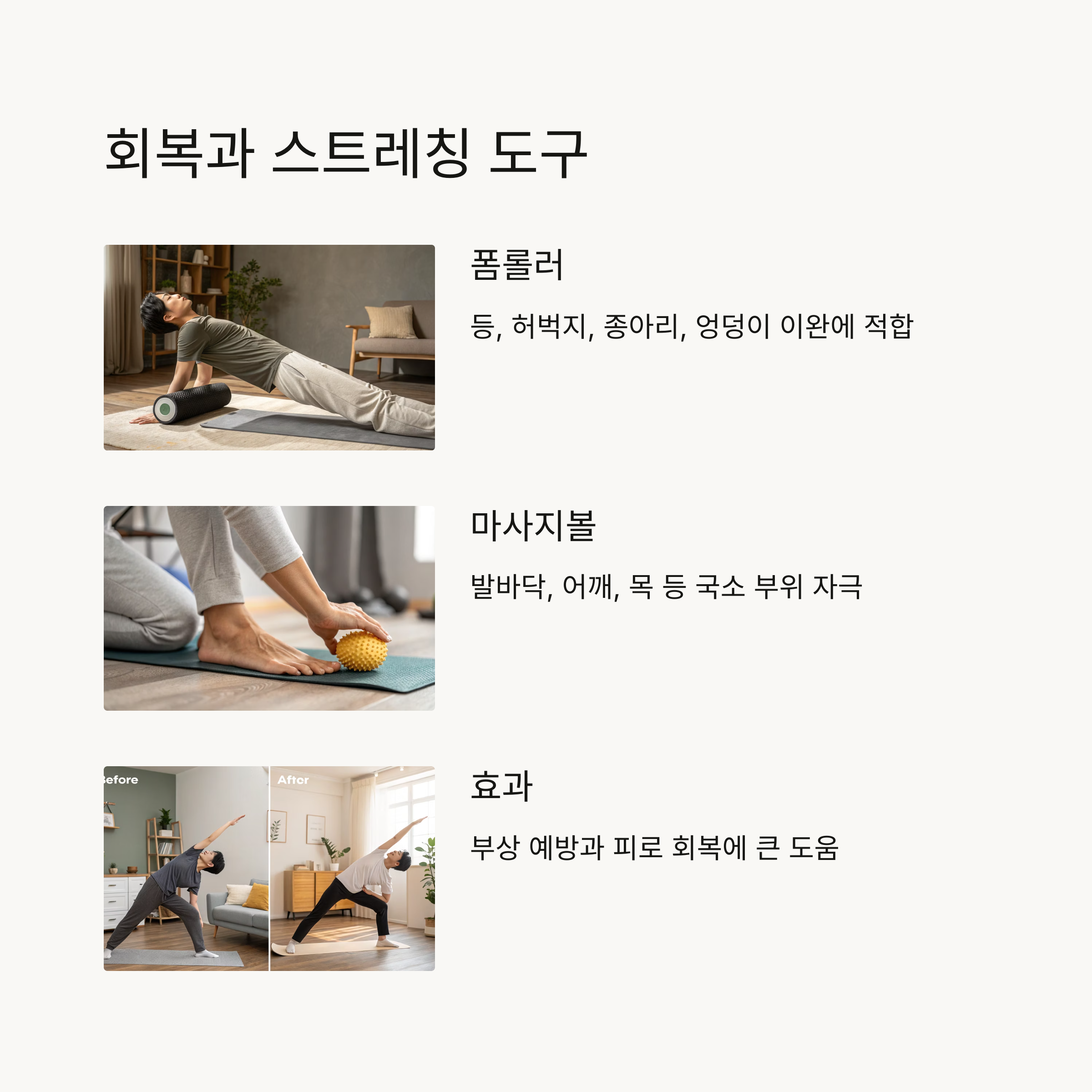 근육 회복과 유연성 향상을 위해 필수적인 아이템입니다.