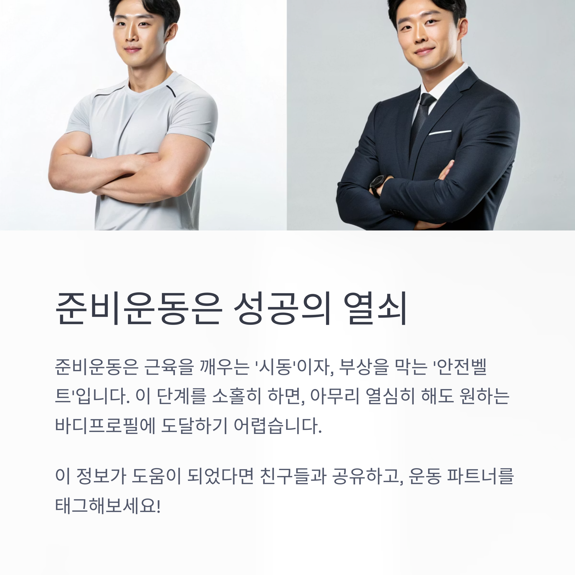 이 글에서는 홈트족을 위한 바디프로필 준비운동 루틴을 단계별로 정리해 드립니다.
