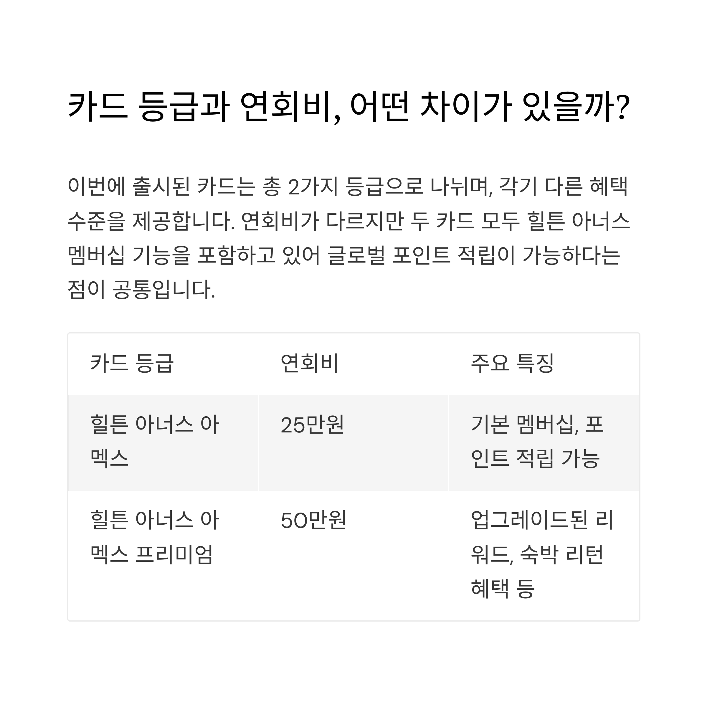 연회비가 다르지만 두 카드 모두 힐튼 아너스 멤버십 기능을