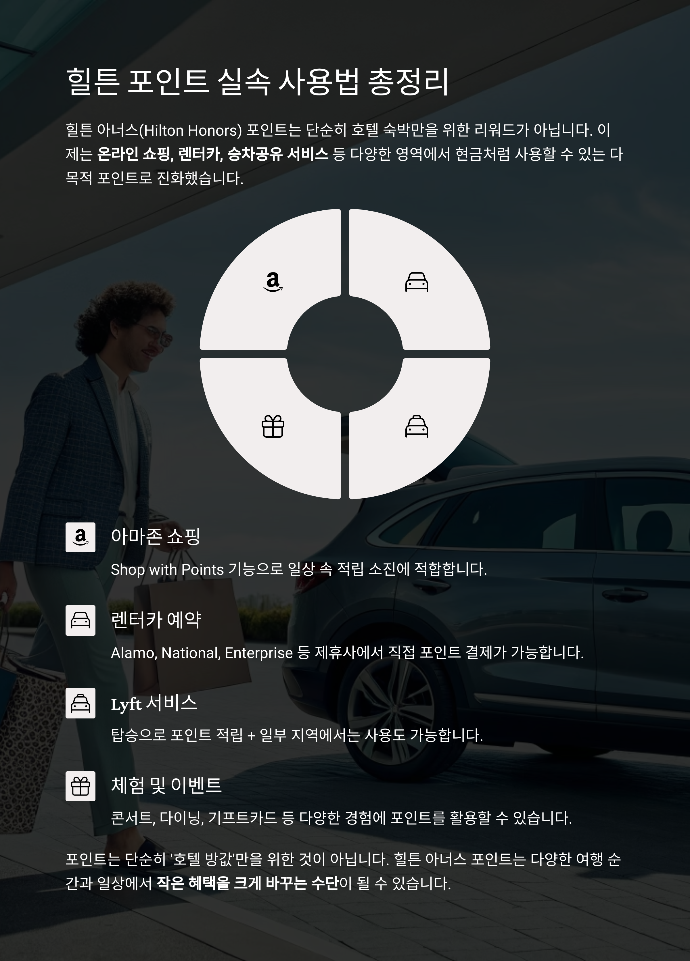 숙박만 쓰면 아깝다! 아마존·렌터카·라이드 서비스까지 포인트 실속 사용법 총정리
