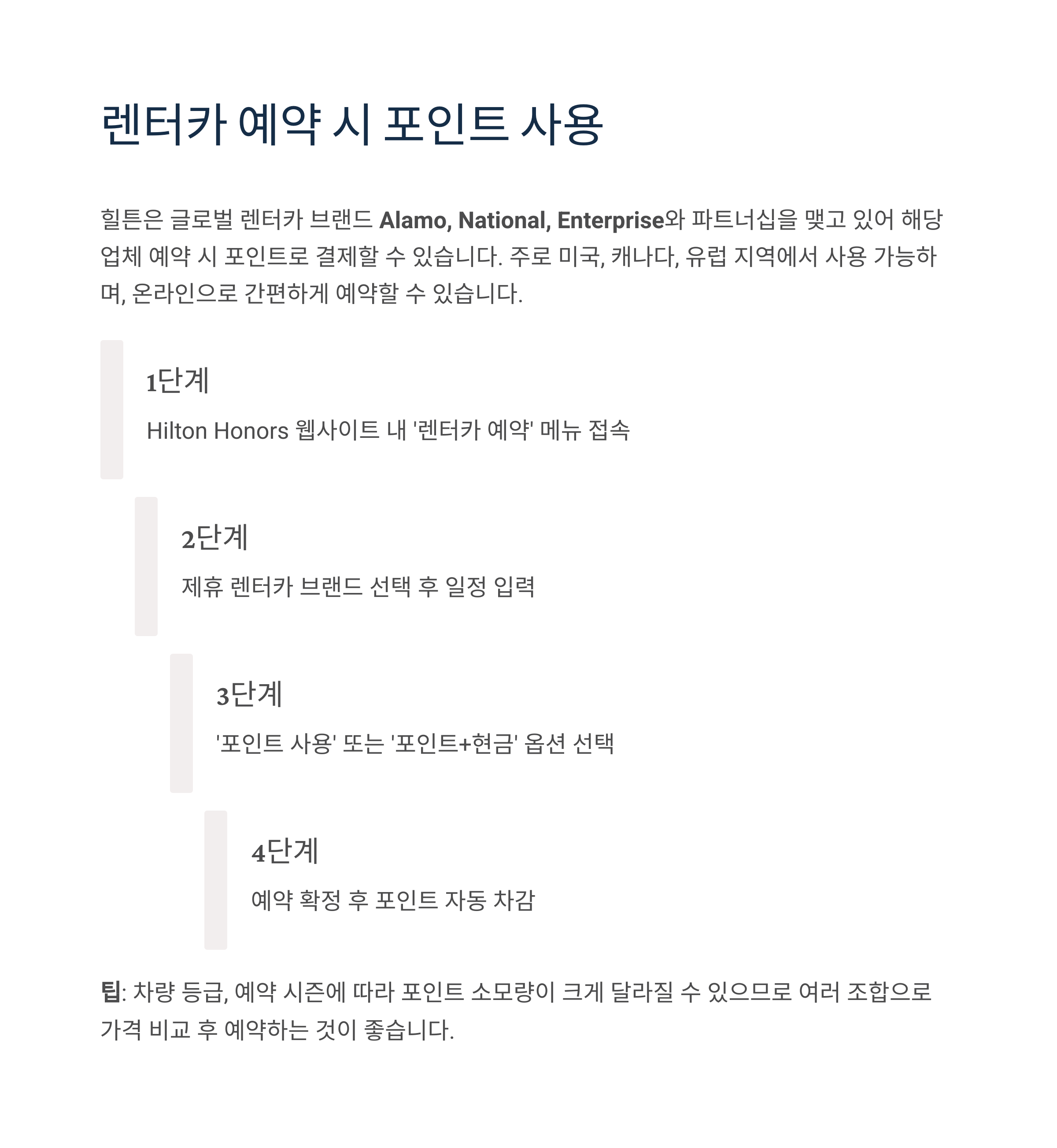 | 렌터카 예약 | Alamo, National 등 제휴사에서 직접 포인트 결제 가능 |