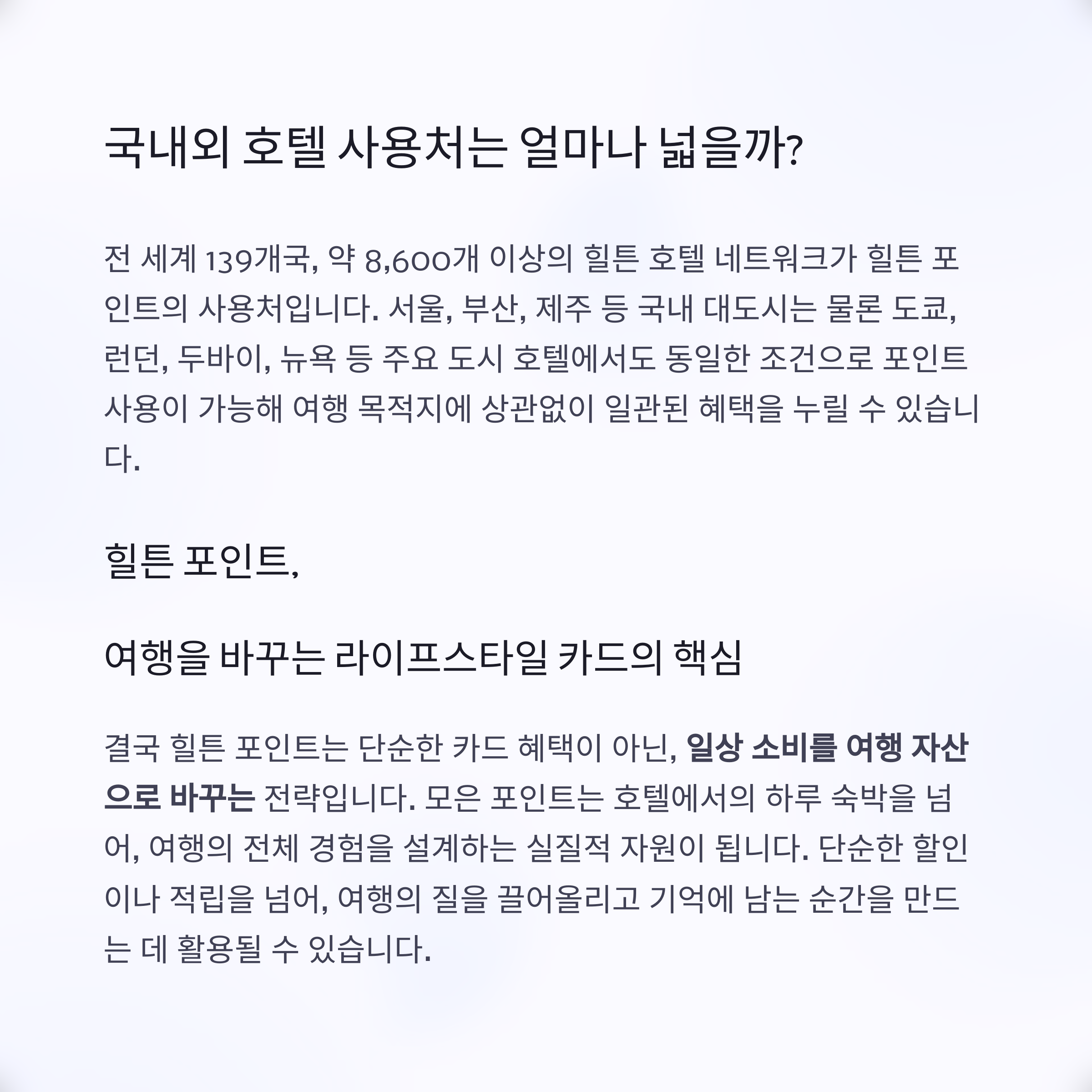 결국 힐튼 포인트는 단순한 카드 혜택이 아닌,