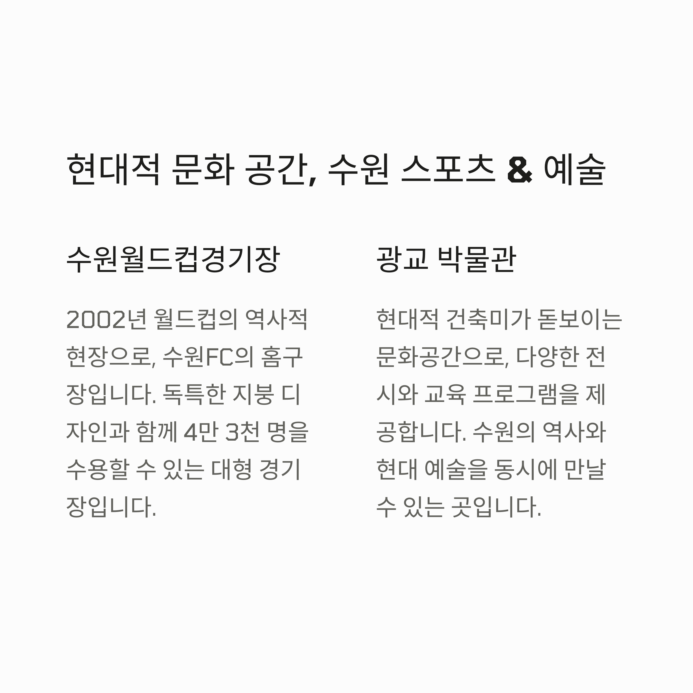 - 수원월드컵경기장 & 수원광교박물관: