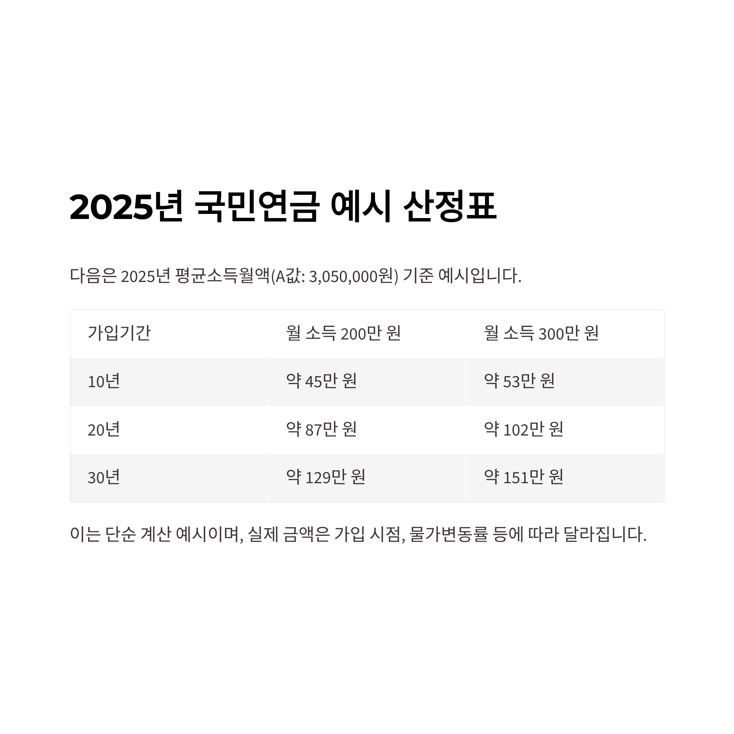 2025년 국민연금 예시 산정표