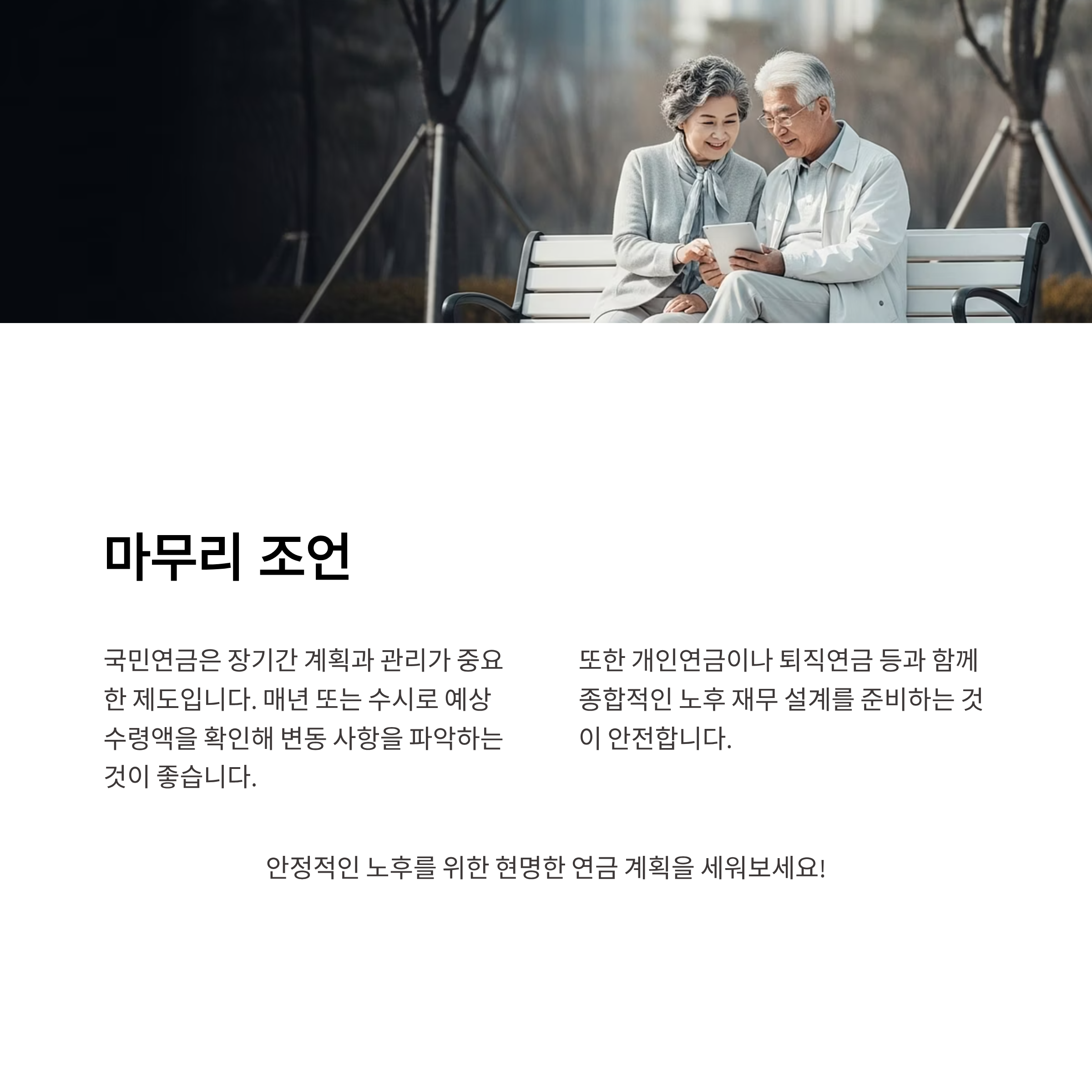 또한 개인연금이나 퇴직연금 등과 함께 종합적인 노후 재무 설계를