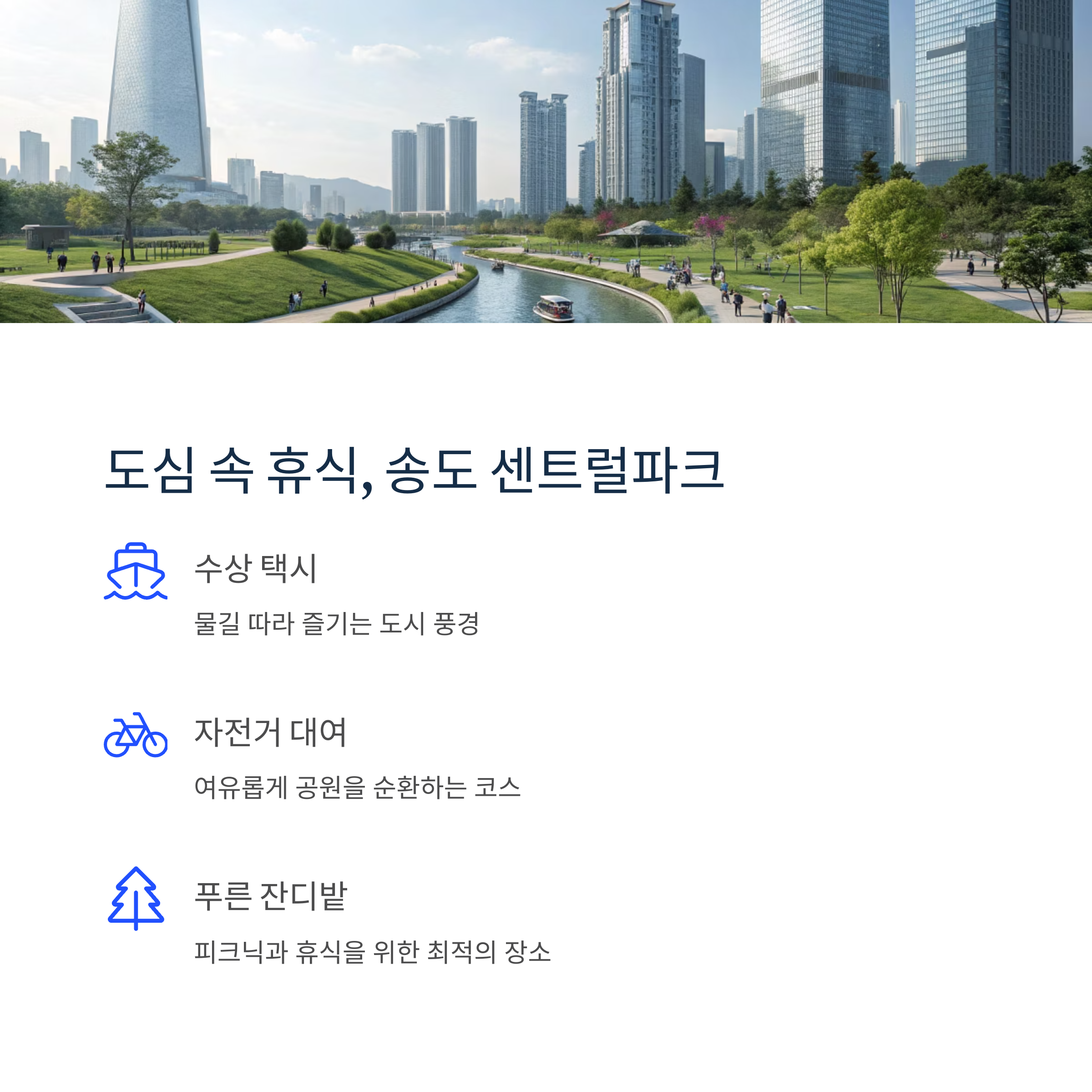 - 송도 센트럴파크: 도심 속 푸른 휴식 공간