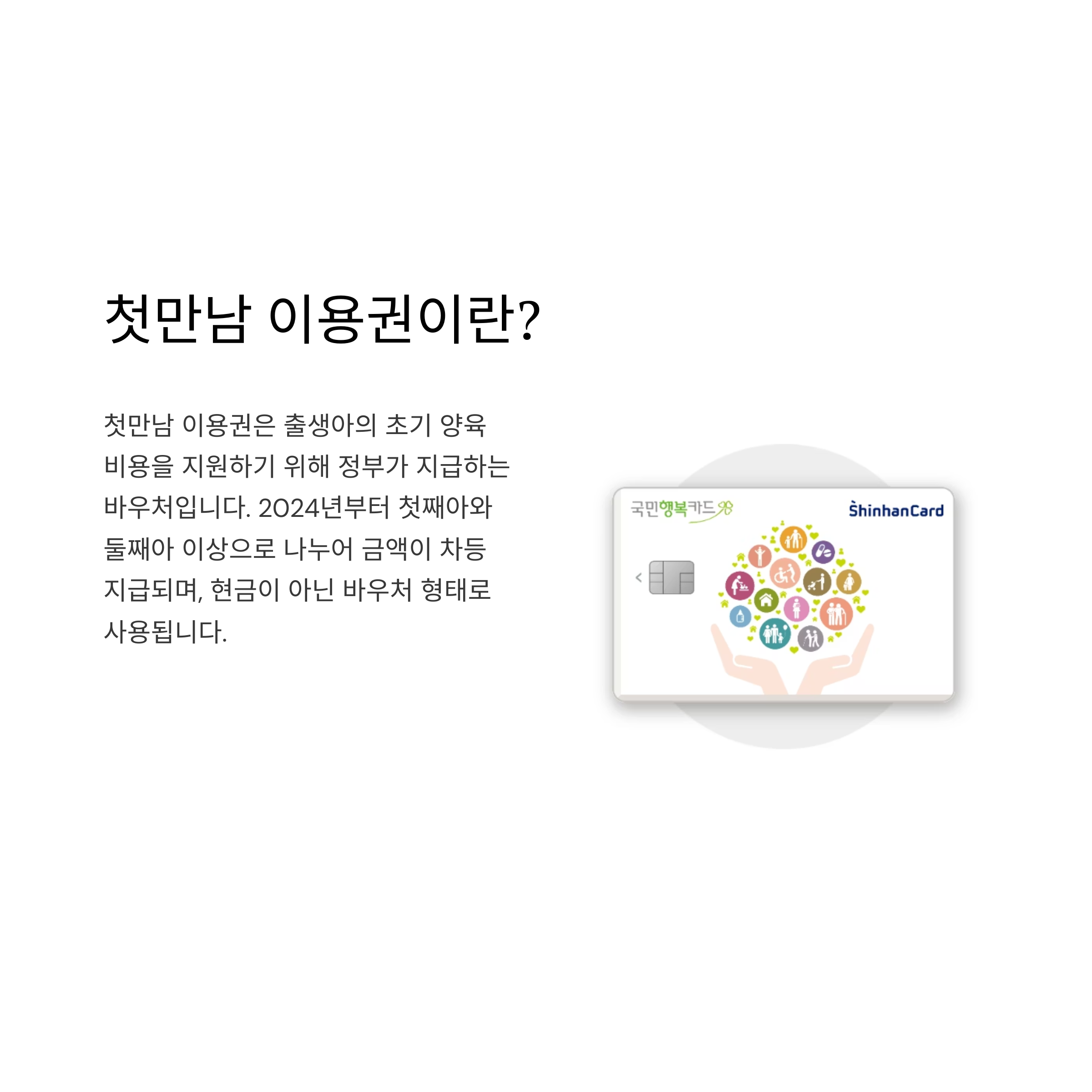 첫만남 이용권은 출생아의 초기 양육 비용을 지원하기 위해 정부가 지급하는 바우처입니다. 2024년부터 첫째아와 둘째아 이상으로 나누어 금액이 차등 지급되며, 현금이 아닌 바우처 형태로 사용됩니다.