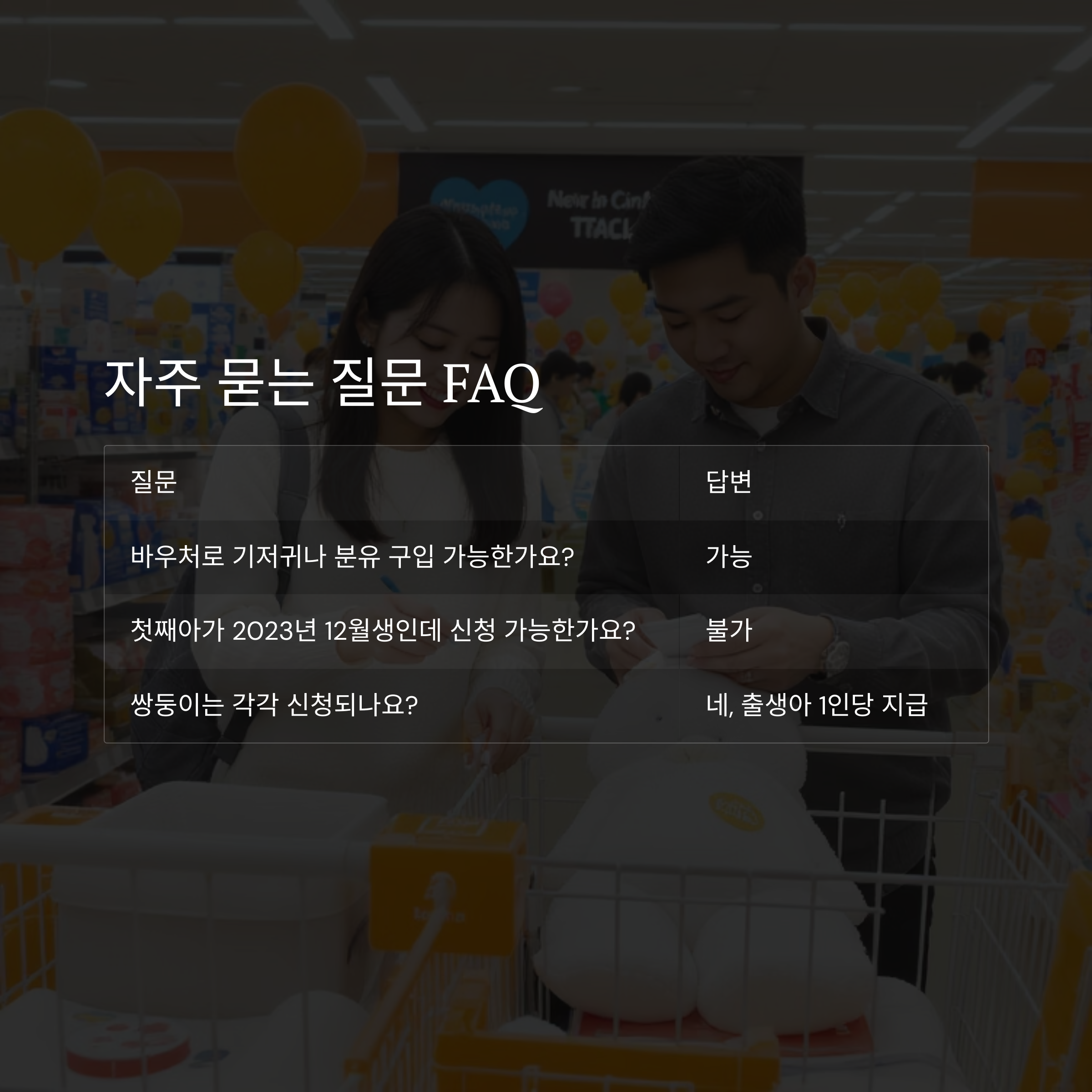 | 바우처로 기저귀나 분유 구입 가능한가요? | 가능 |