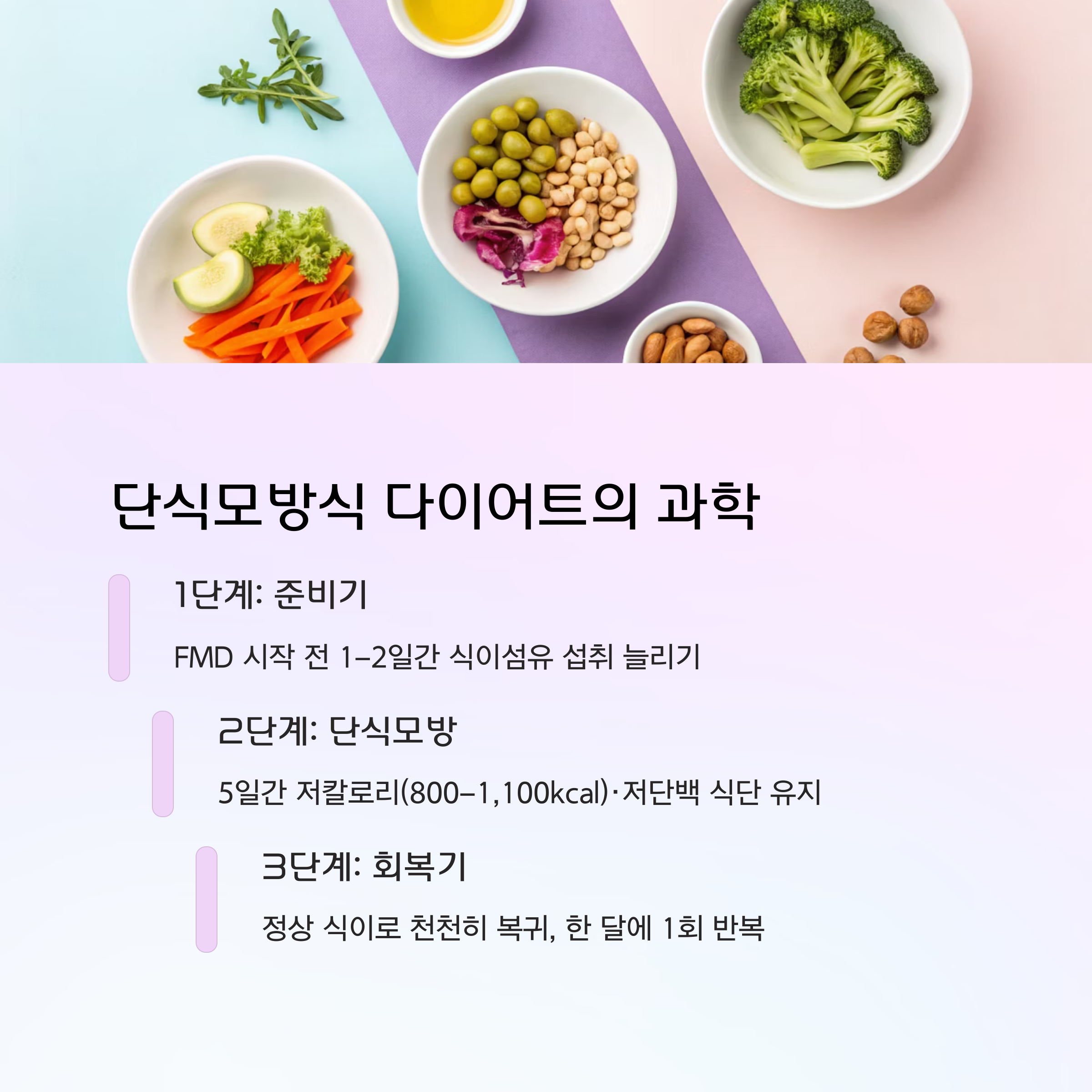 FMD(Fasting Mimicking Diet)란 단식을 모방하면서도 소량의 식사를 유지하는 다이어트 방법입니다