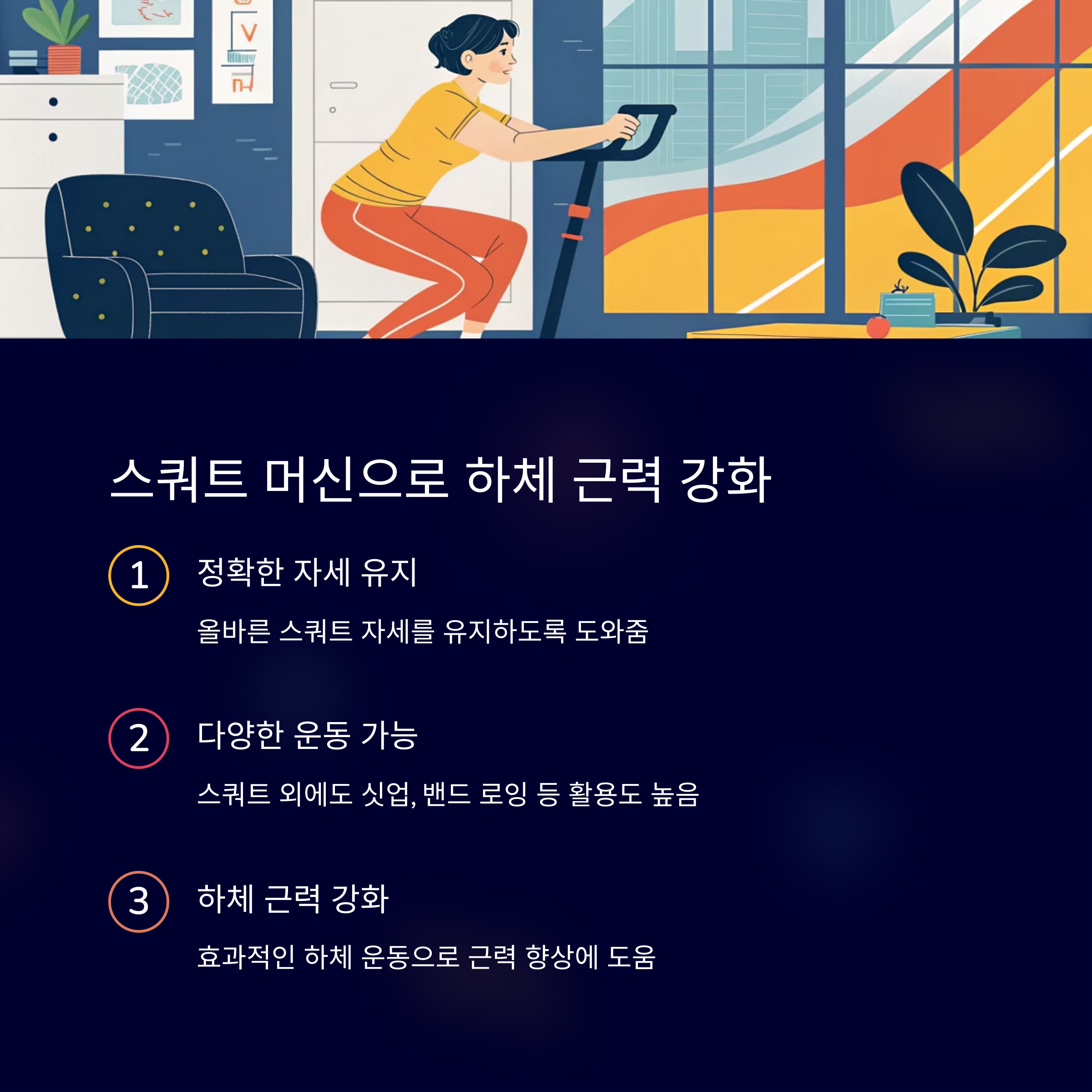 스쿼트 외에도 싯업, 밴드 로잉 등 다양한 운동이 가능하여 활용도가 높습니다.
