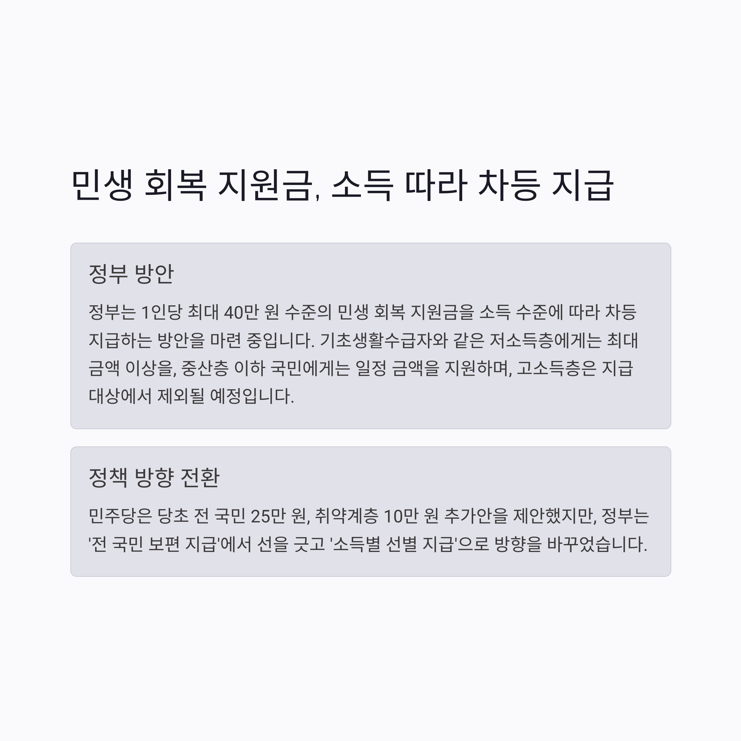 ‘소득별 선별 지급’으로 방향을 바꾸었습니다.