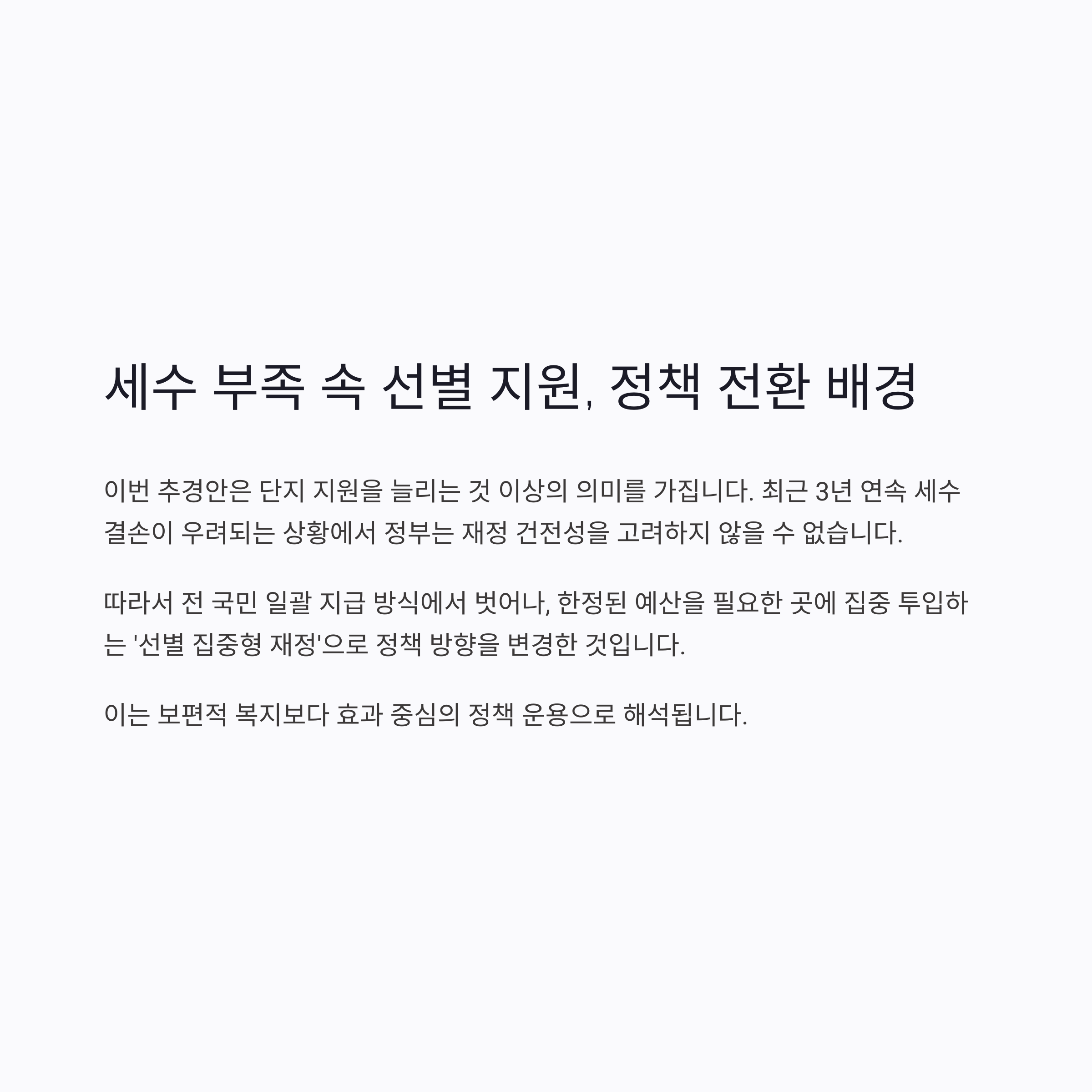 이는 보편적 복지보다 효과 중심의 정책 운용으로 해석됩니다.
