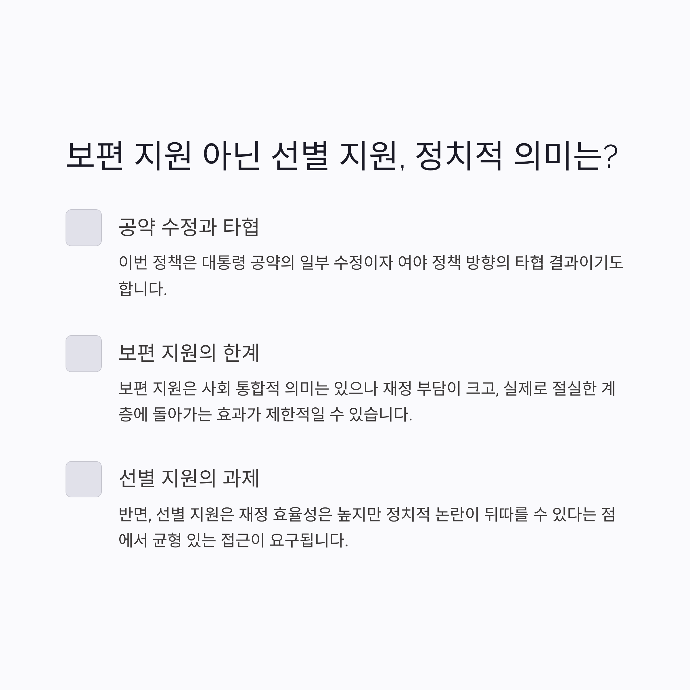 보편 지원 아닌 선별 지원, 정치적 의미는?