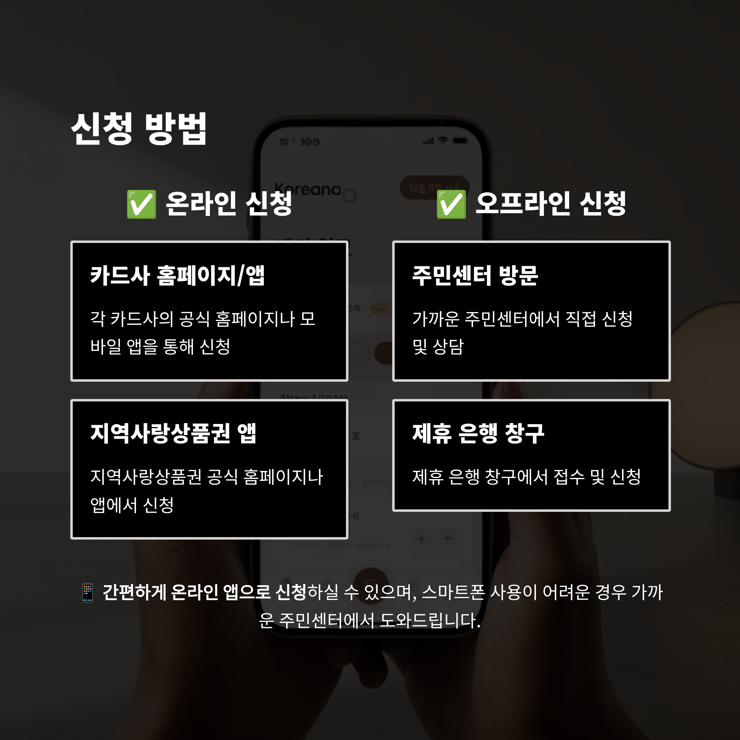 📱 간편하게 온라인 앱으로 신청하실 수 있으며, 스마트폰 사용이 어려운 경우 가까운 주민센터에서 도와드립니다.