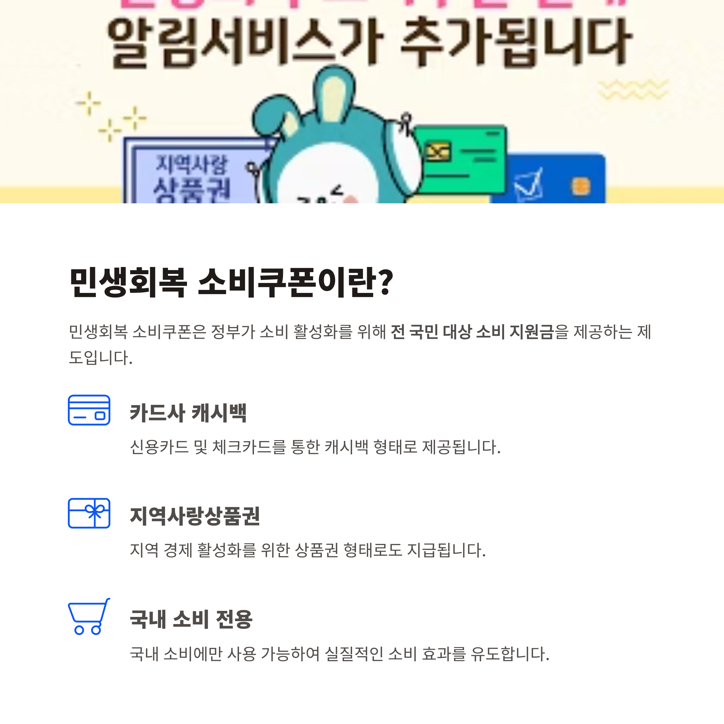 - 소비쿠폰은 지정된 기간 내에 사용해야 하며, 사용하지 않을 경우 자동 소멸될 수 있습니다.