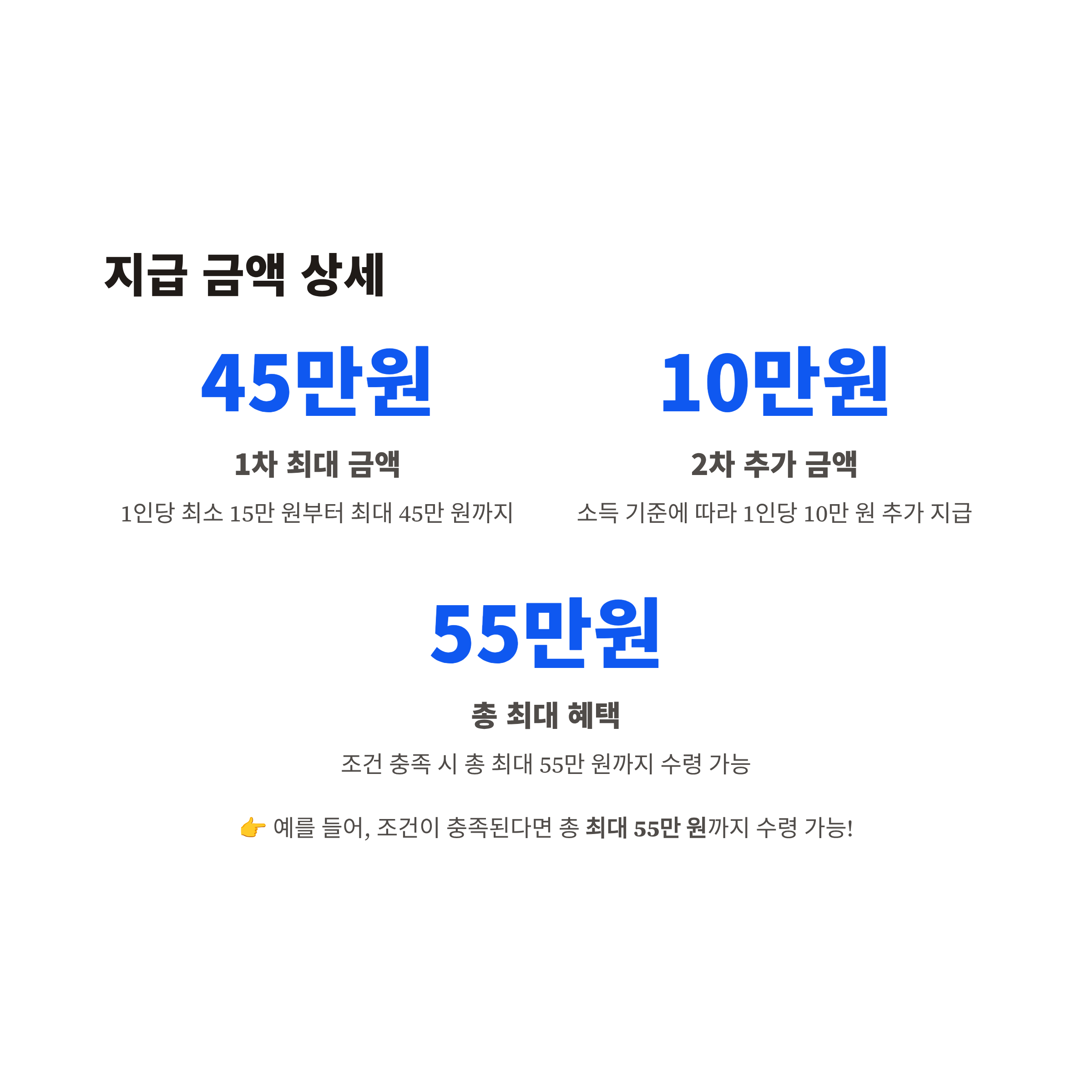👉 예를 들어, 조건이 충족된다면 총 최대 55만 원까지 수령 가능!