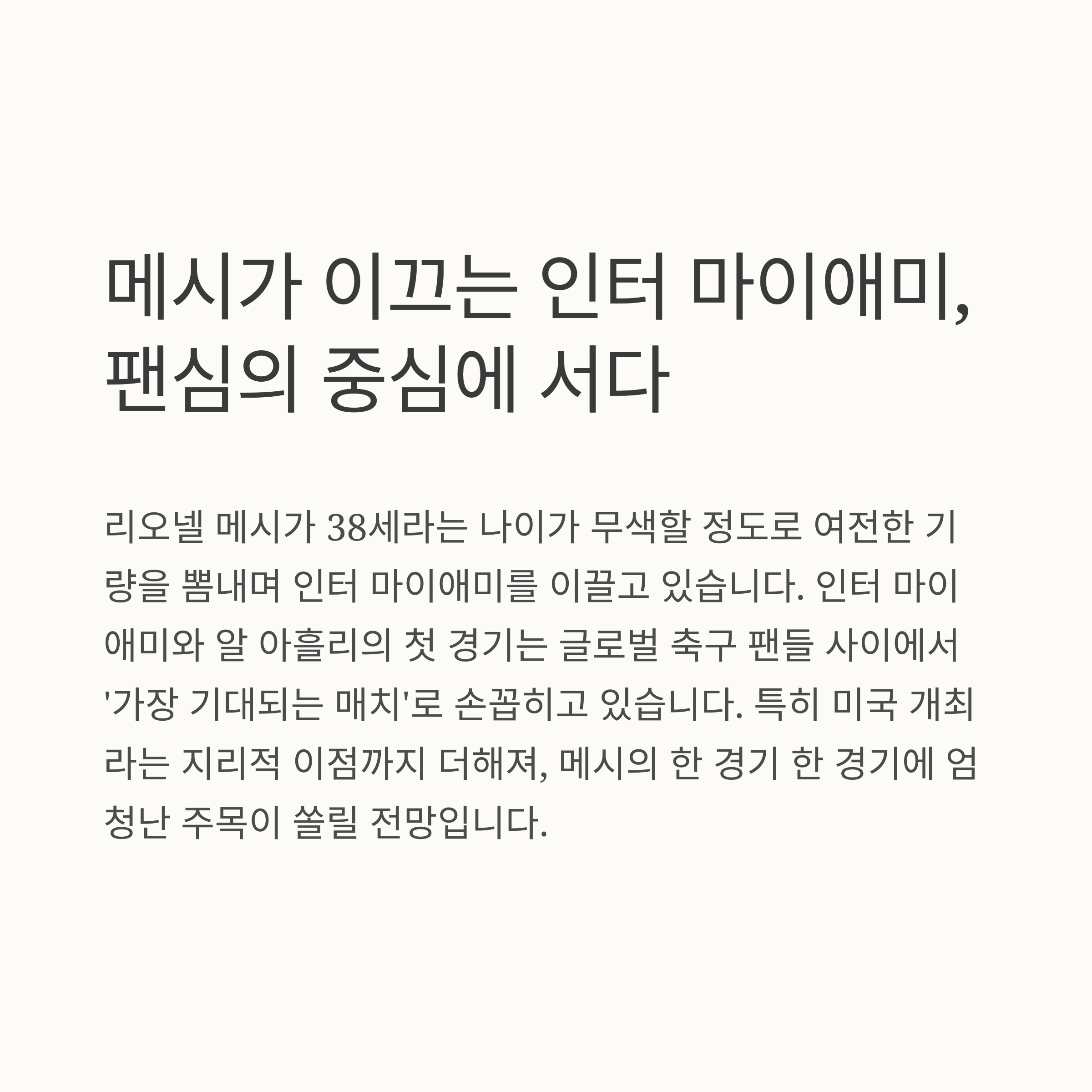 | 인터 마이애미 vs 알 아흘리 | 메시 출전, 미국 내 관심 집중 |